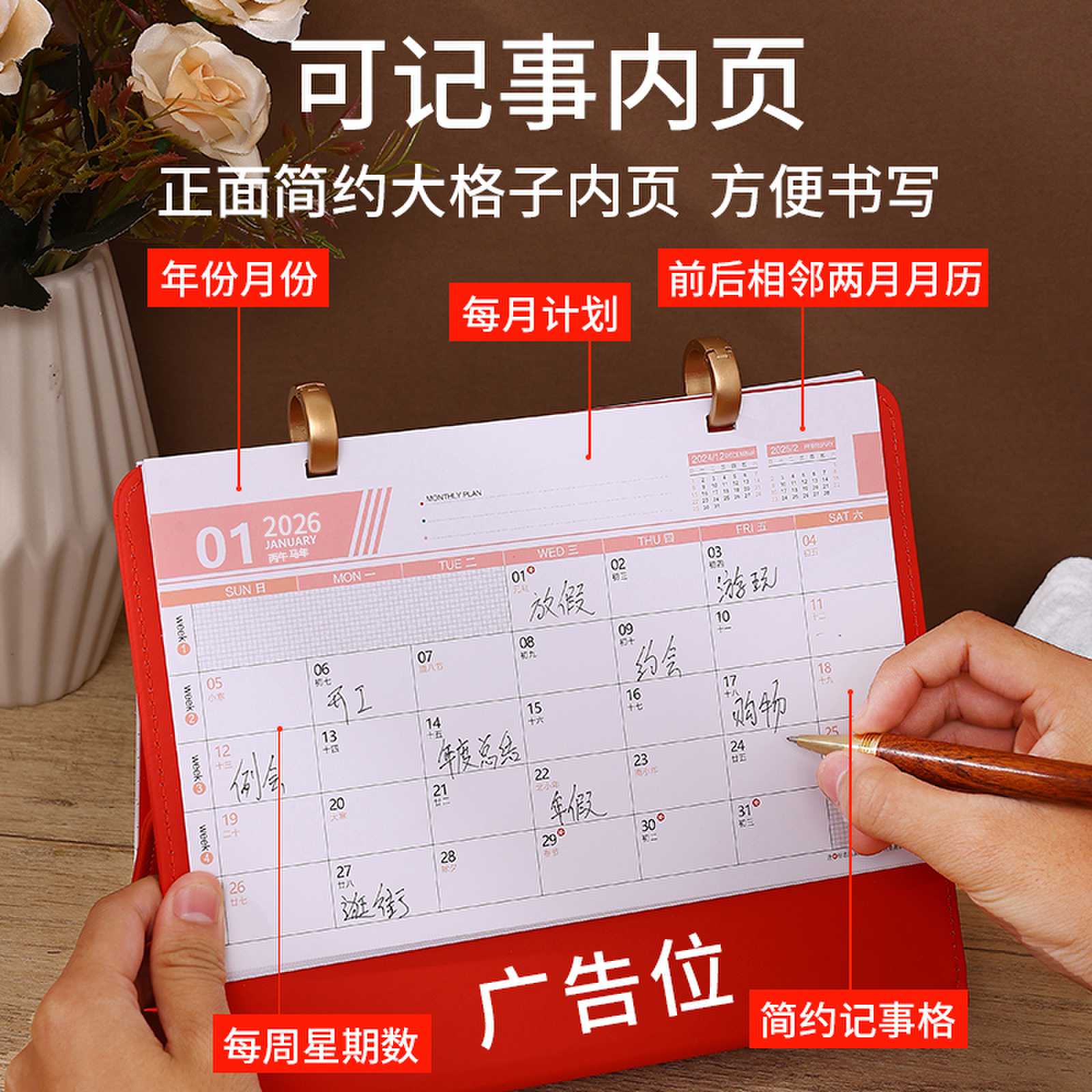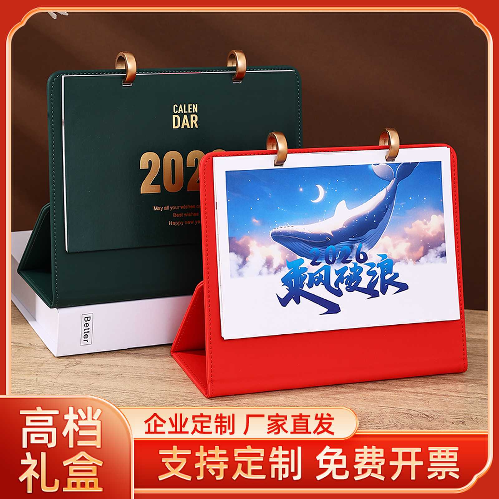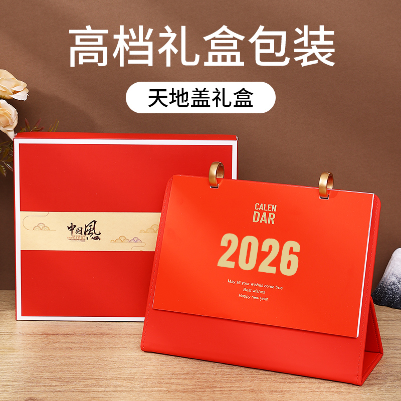 2026年台历创意皮架日历办公室桌面摆件企业定制月历定制台历日历