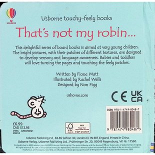 英语原版 系列触感绘本ThatsNotMyRobin菲奥娜瓦特作品02岁宝宝认知启蒙亲子共读知更鸟特征触感认知颜色认知厄斯本 书这不是我