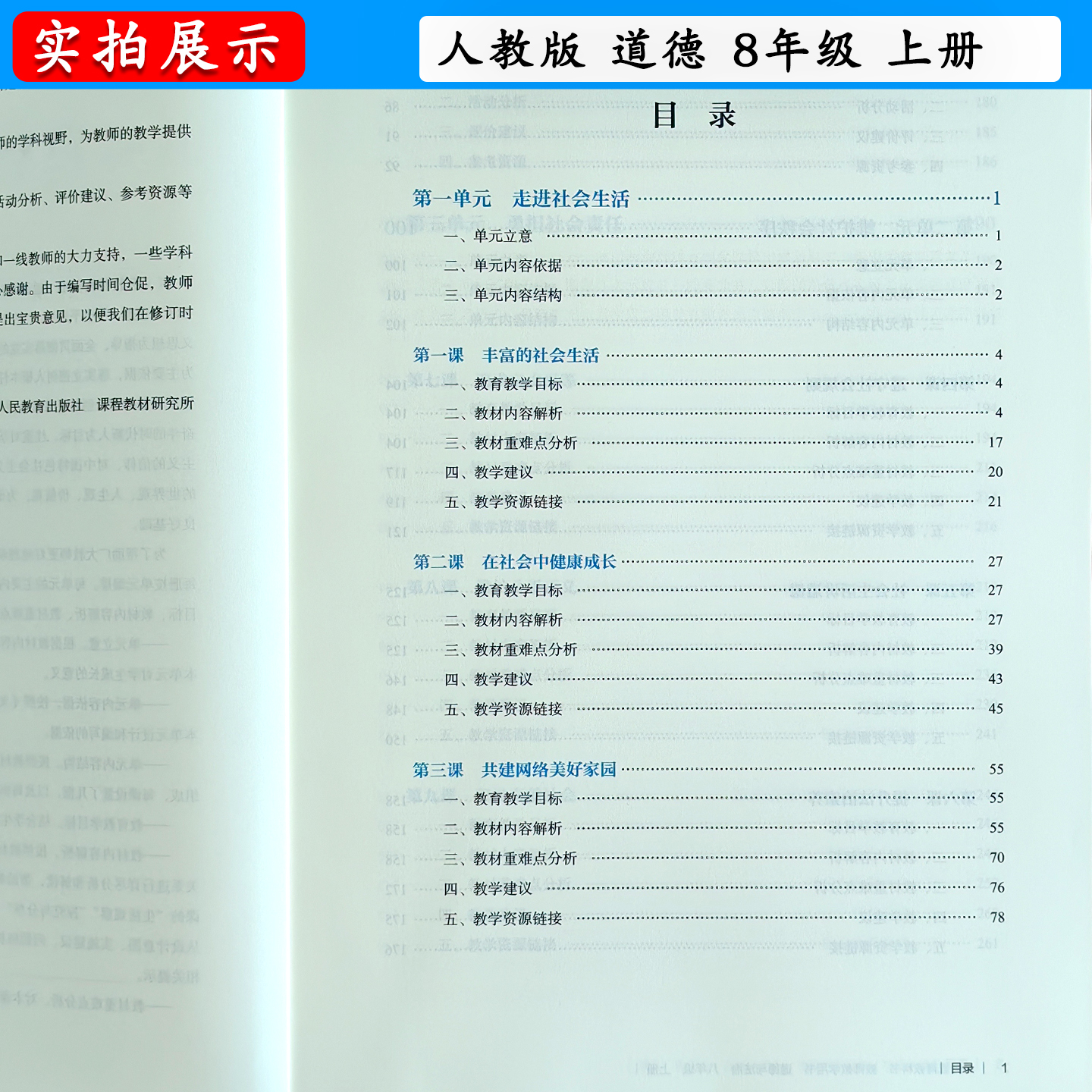 初二上学期教师教学用书初中道德八年级上册老师备课教案教学指导人教社教科书 教师用书道德与法治8年级上册人教版 2025秋新版