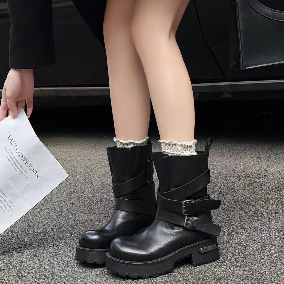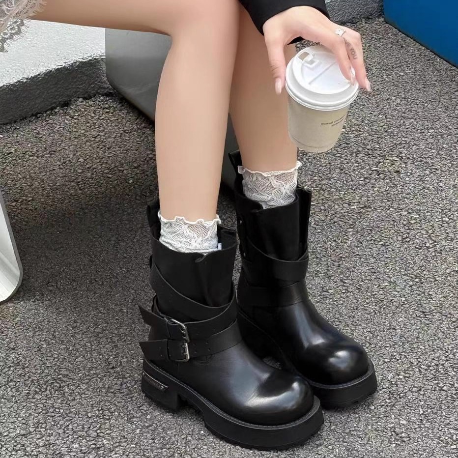 中帮机车靴子男生增高皮靴 2025新款 马丁靴男款 英伦风黑色高帮皮鞋