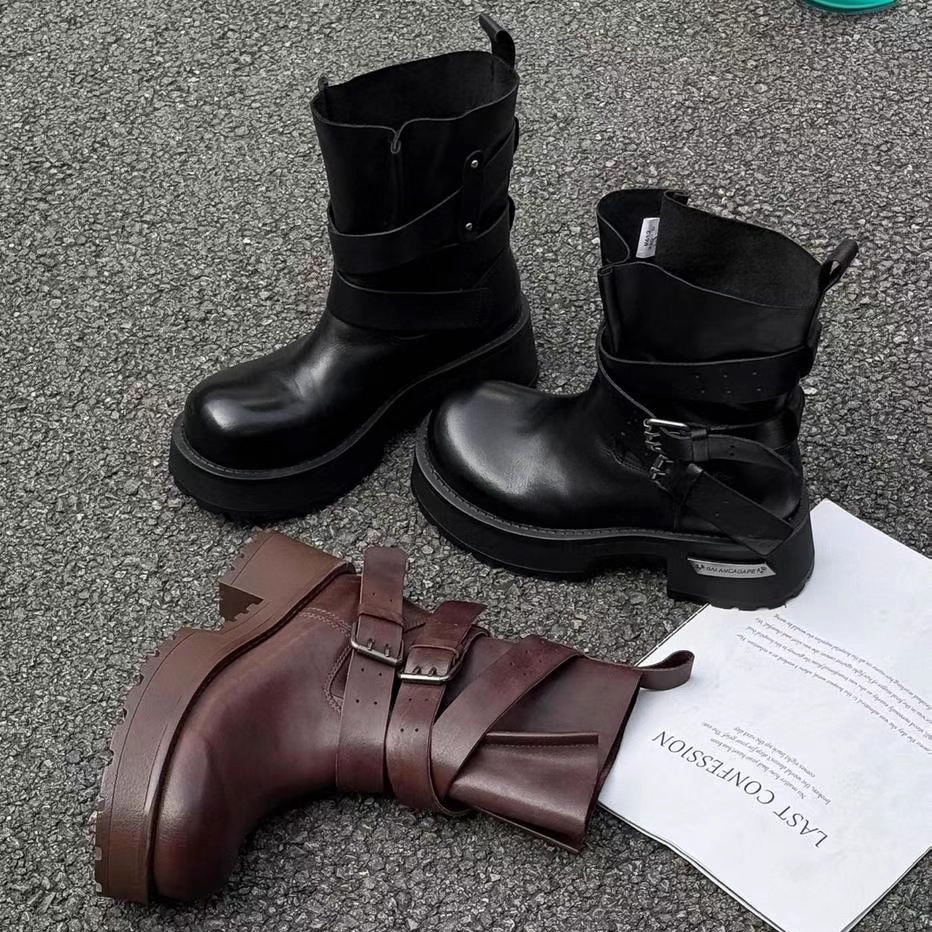 美拉德棕色靴子厚底黑色短靴 秋复古女鞋 英伦风马丁靴女款 2025新款