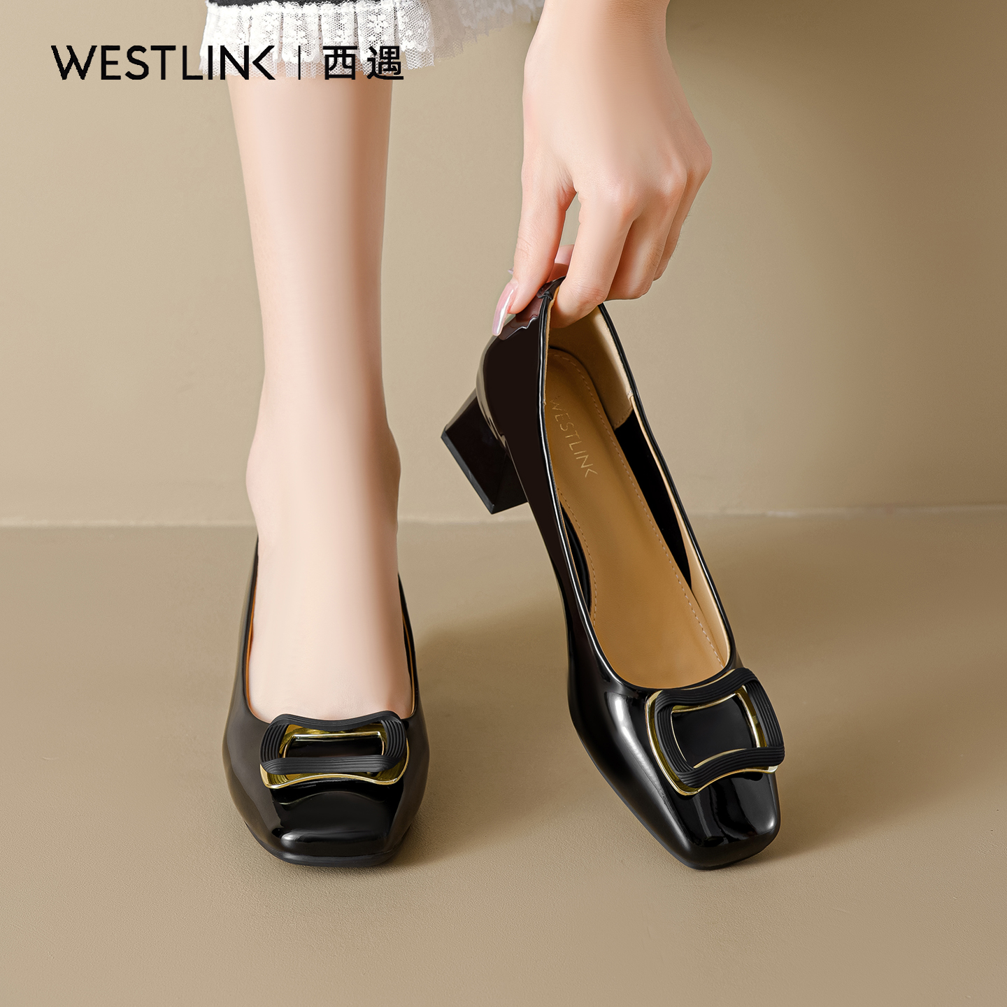 商场新款 百思图25秋季 浅口单鞋 小红鞋 女婚鞋 一脚蹬皮鞋 梦中人