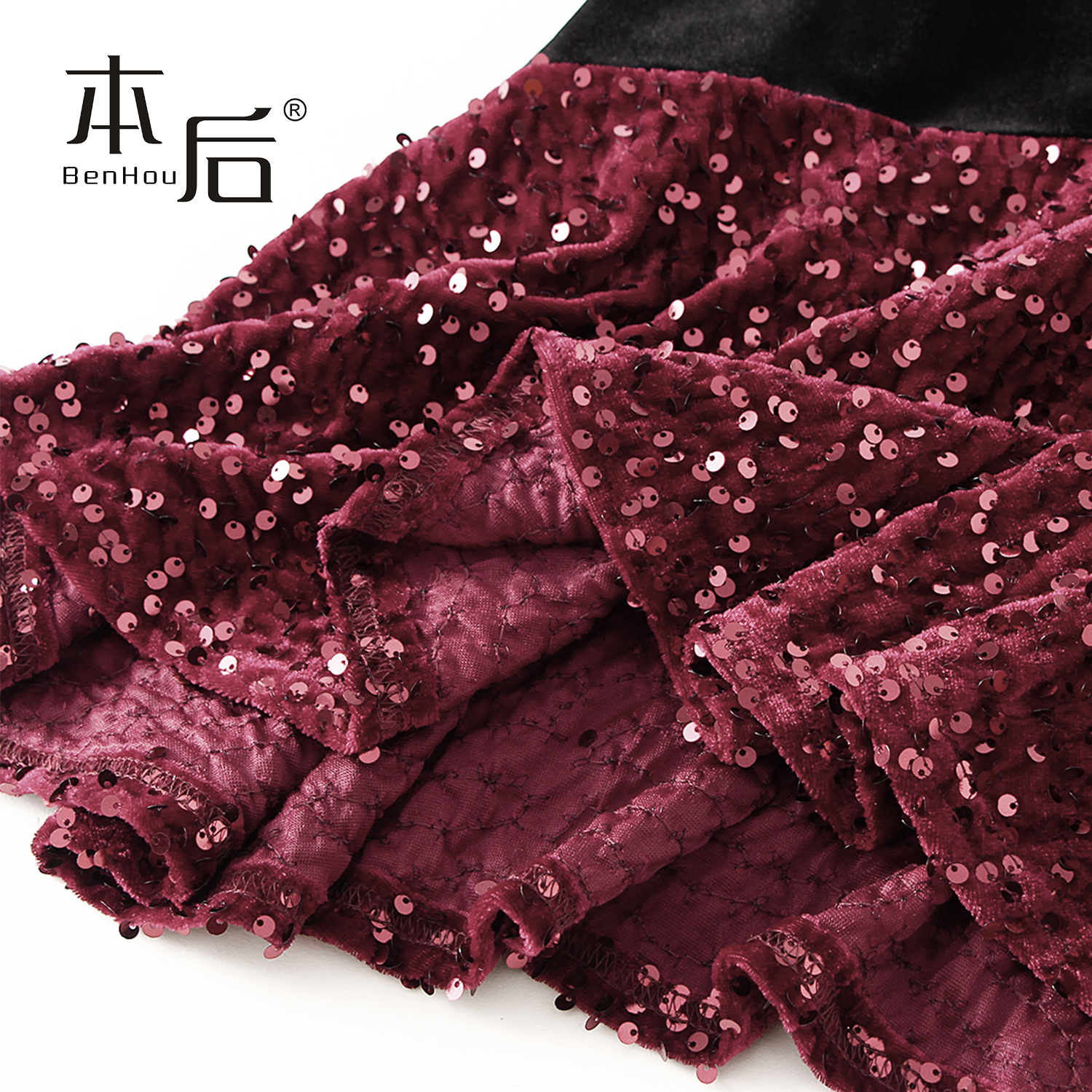 丝绒拼接亮片鱼尾裙半身裙女中长款 J530 黑色裙子 本后 BenHou