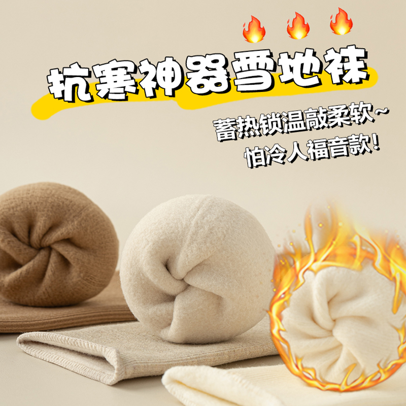锁温保暖 蕉内热皮5系发热女士长袜加厚袜子棉袜毛圈袜防臭中筒袜