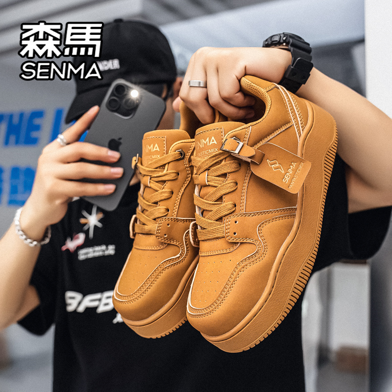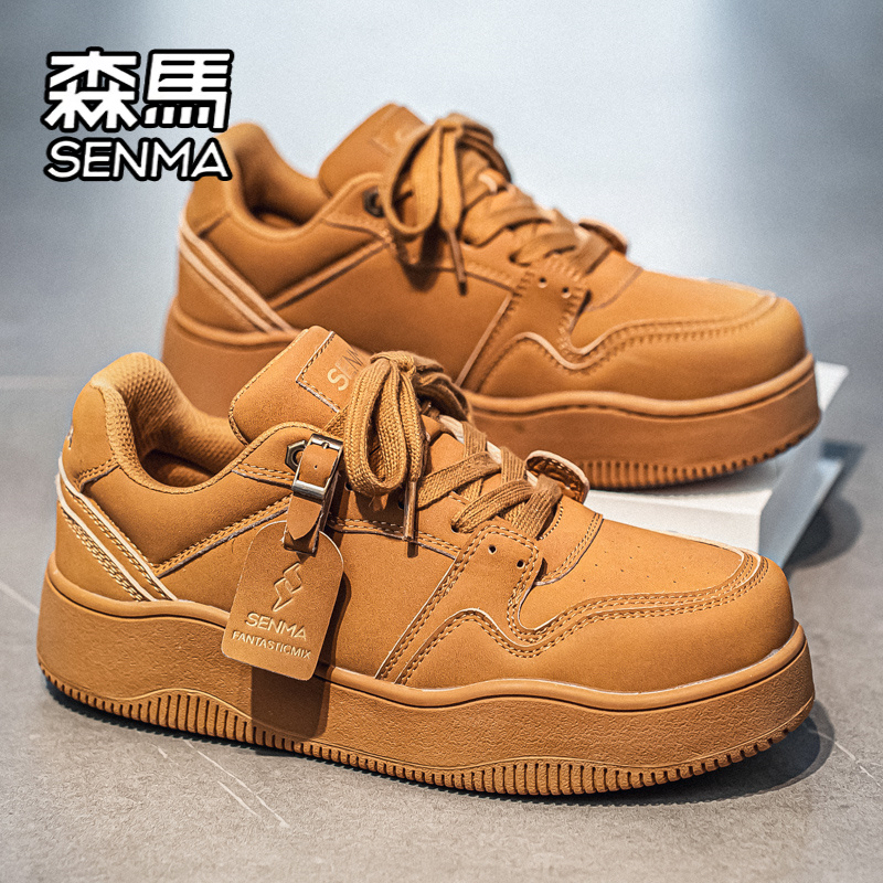 男鞋 子软弹平底鞋 厚底增高情侣休闲鞋 女鞋 革面 运动鞋 特步秋冬板鞋