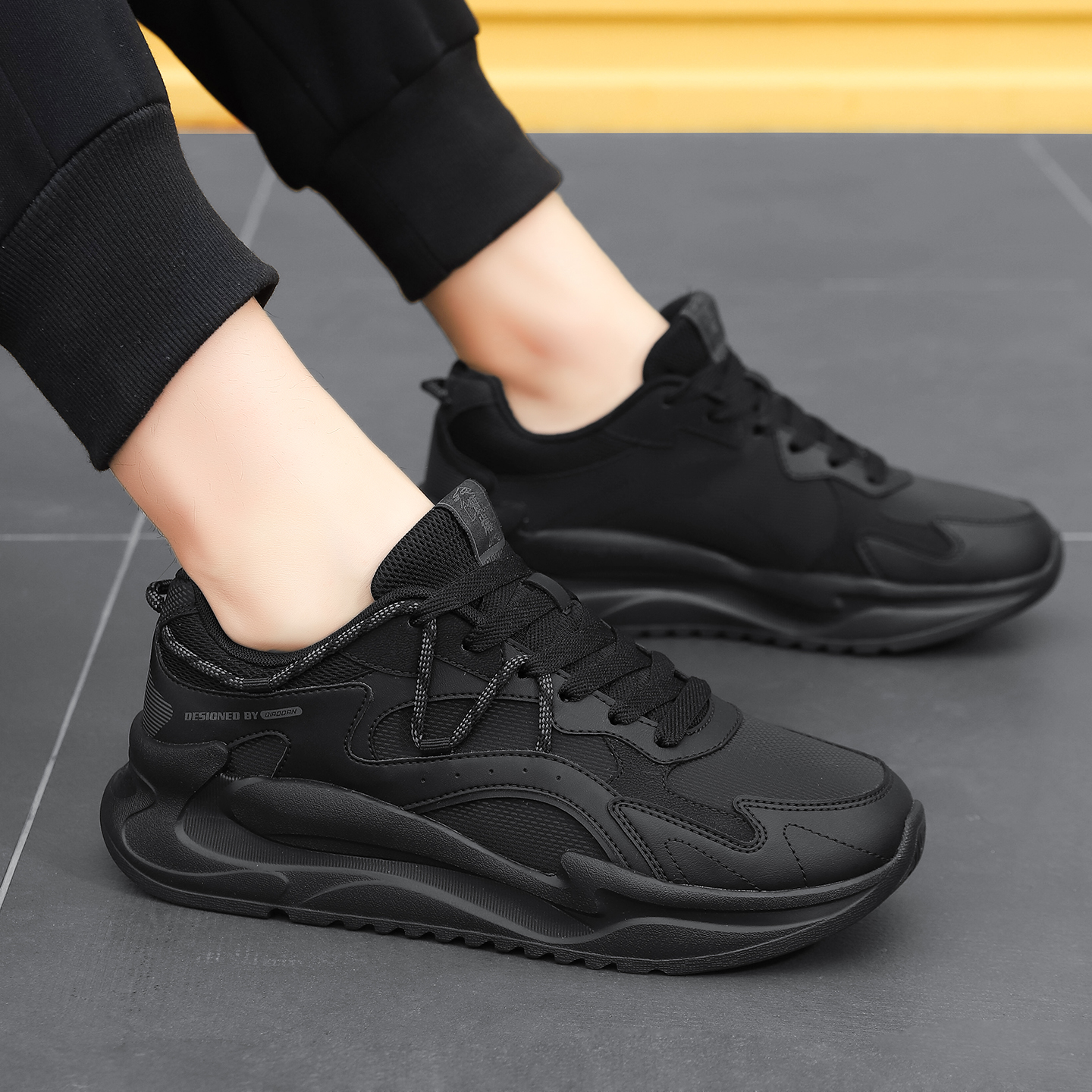 秋冬新款 黑色公务鞋 跑步鞋 防泼水跑鞋 皮面男鞋 鸣鸥鸿星尔克运动鞋