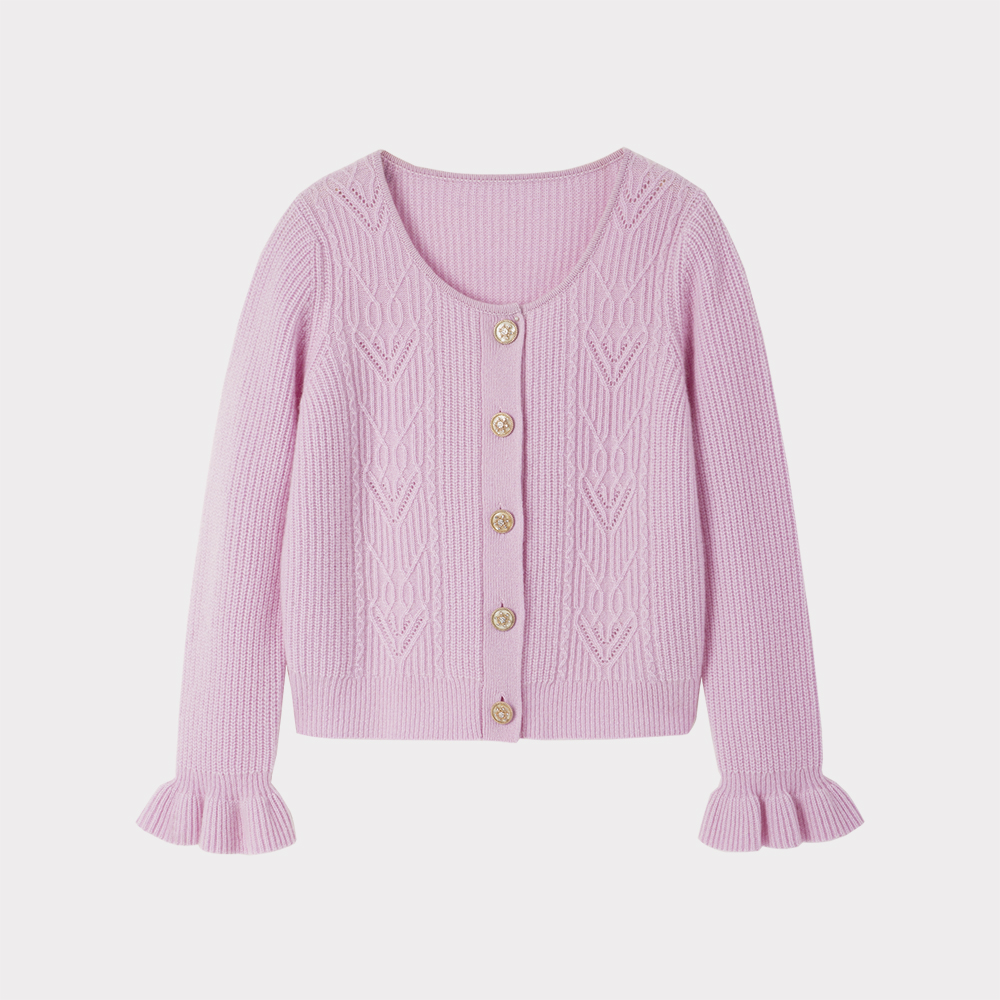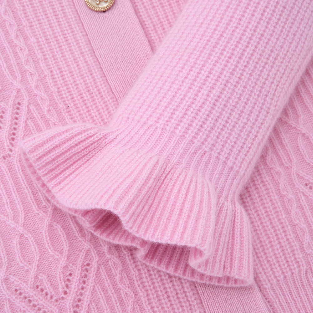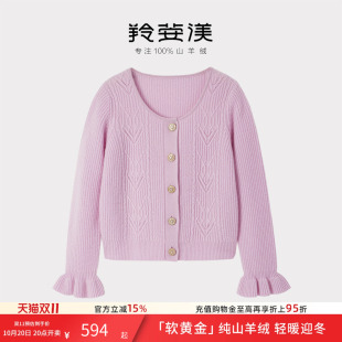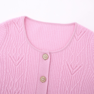 洋气羊绒衫 通勤毛衣时尚 外套女加厚短款 100纯羊绒圆领针织开衫