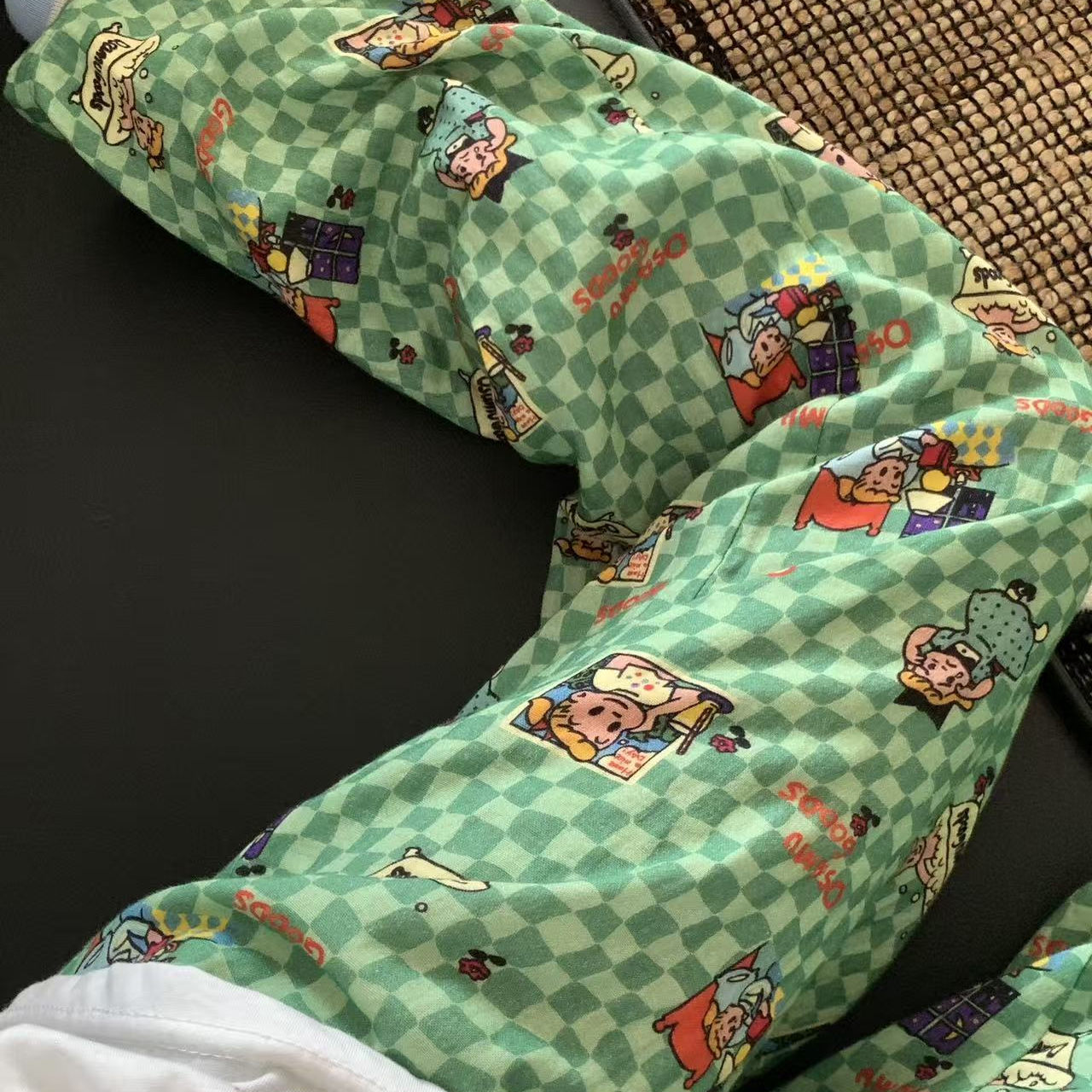 绿色女孩心情 可外穿居家有口袋 可爱卡通全棉双层纱宽松舒适长裤