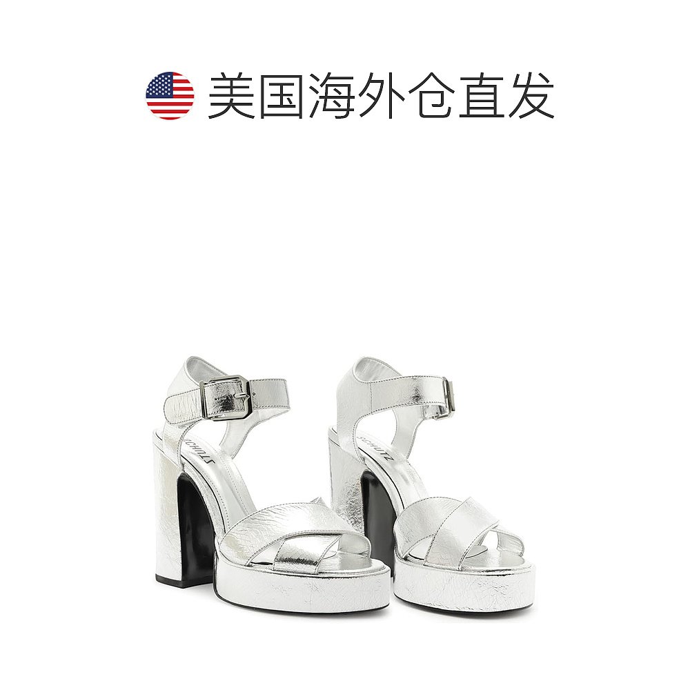 Schutz Prata皮革平台脚踝带VER022 Penelope凉鞋 银色 女式 自营