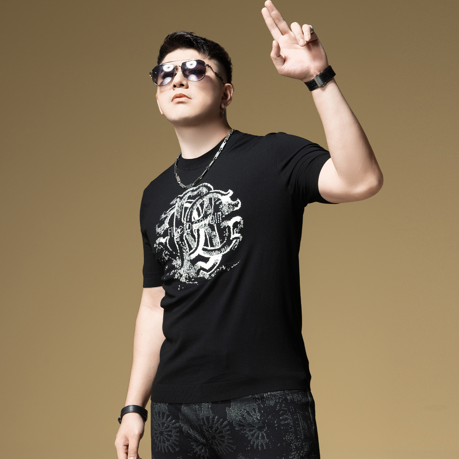 毛衣短袖 2025新款 男潮牌字母提花烫钻早秋上衣 高端针织衫 ZOUK男士