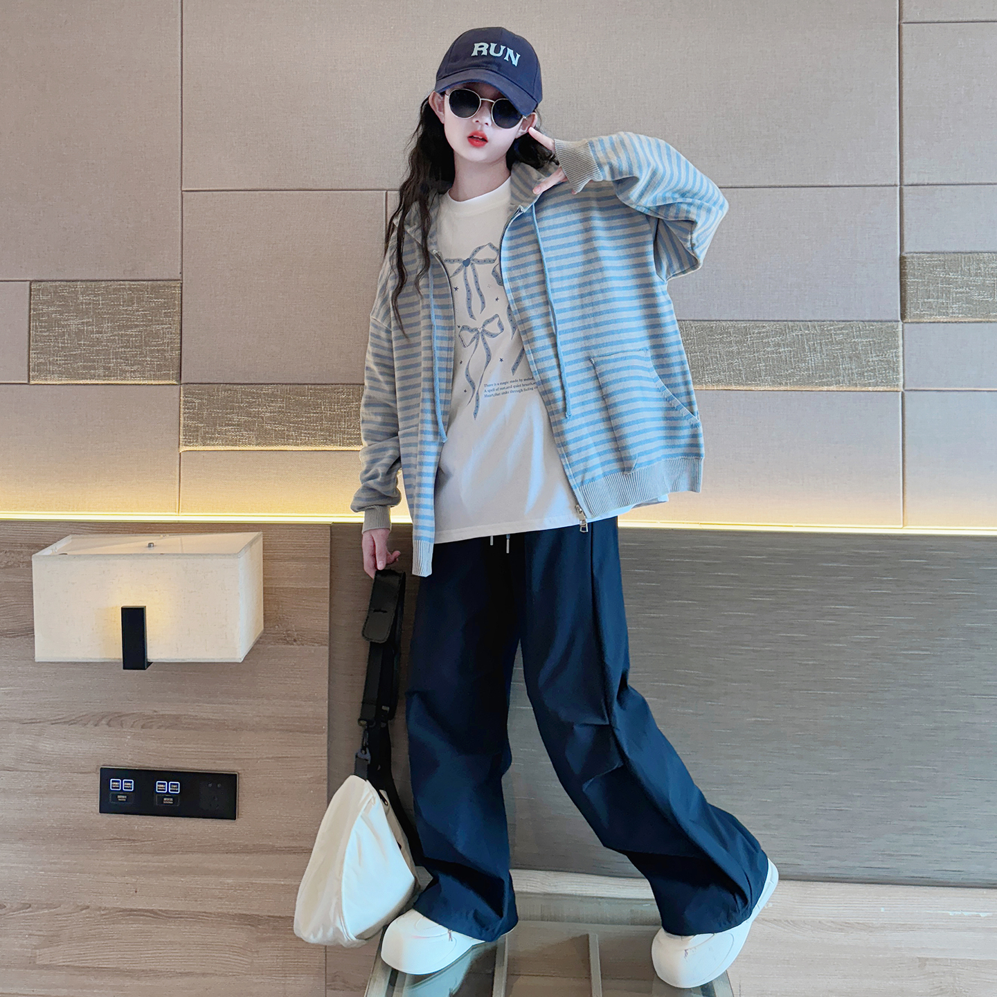 大童女孩网红连帽上衣 秋装 女童毛衣外套2025新款 儿童洋气针织开衫
