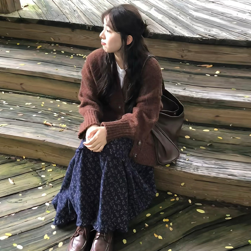 秋季 森马半身裙女格纹伞裙复古风2025新款 A字长裙显瘦 商场同款