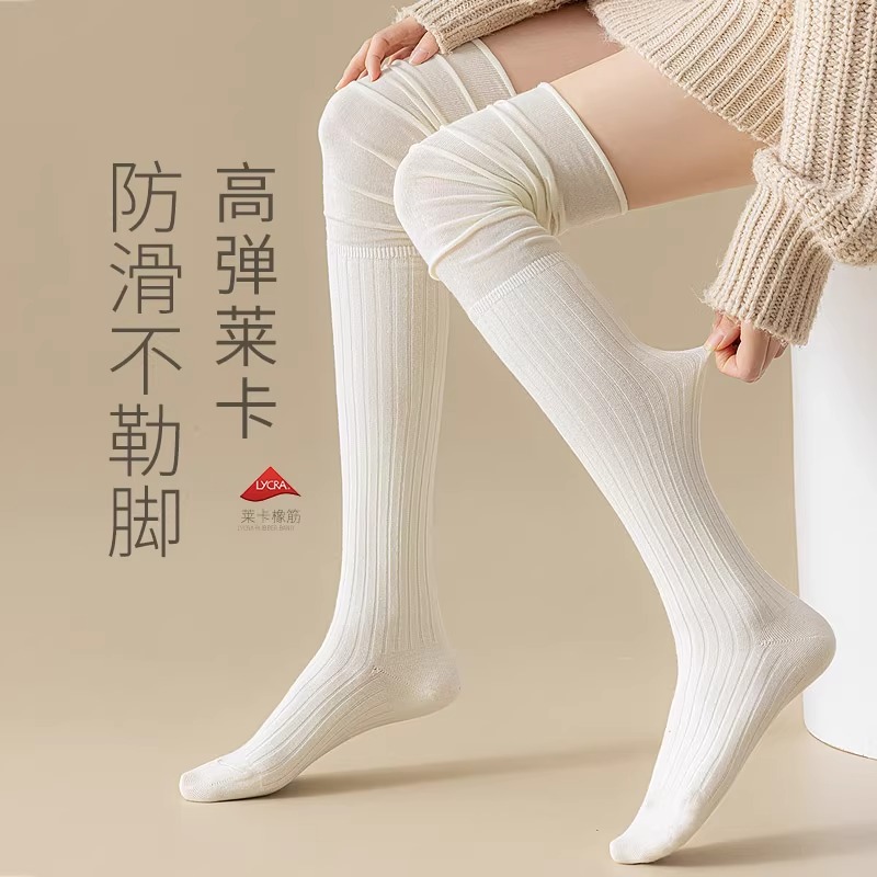 长筒靴袜子女搭配靴子小腿堆堆过膝袜春秋内搭白色大腿长筒袜羊毛