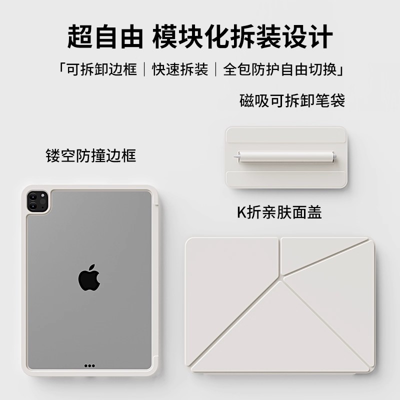 7双面夹iPad11可拆分离边框防摔iPadpro11寸平板保护套带笔槽K折可拆卸支架 2025款 iPad10代磁吸保护壳air5