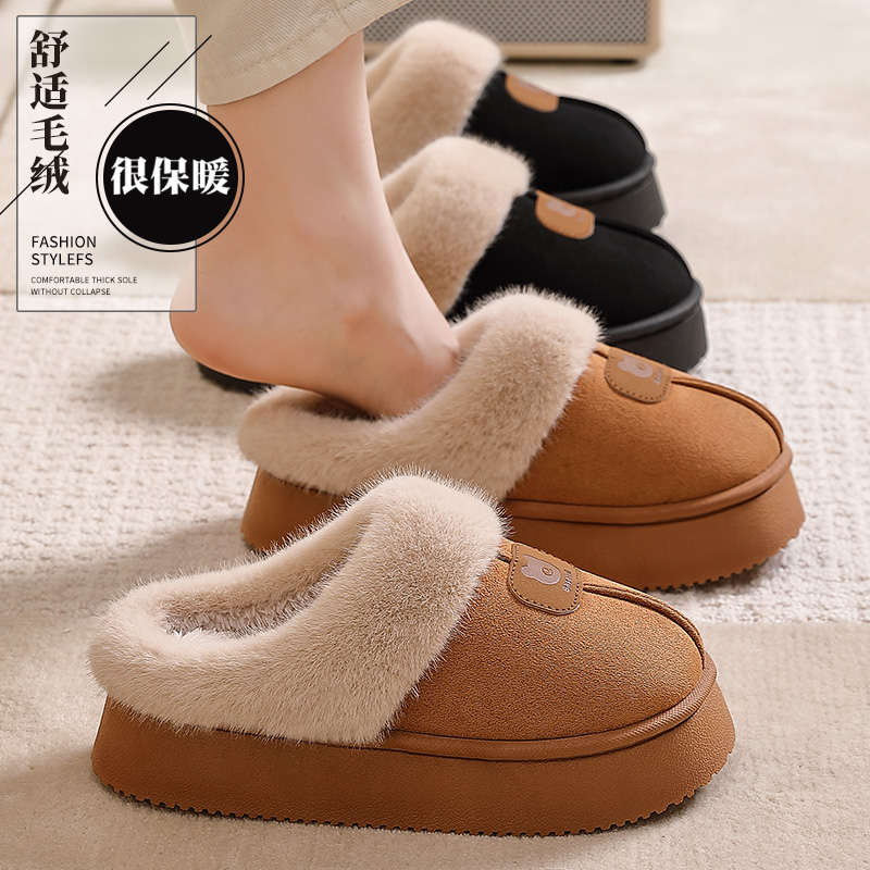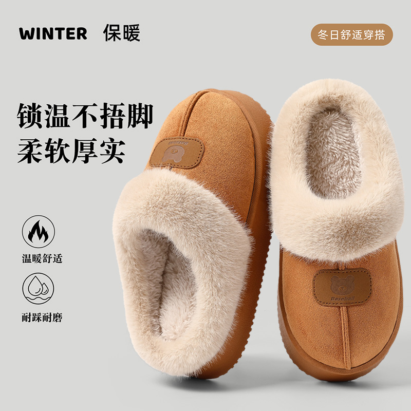 家居室内防滑保暖高颜值毛领棉拖女款 2025新款 女士冬季 毛绒棉拖鞋