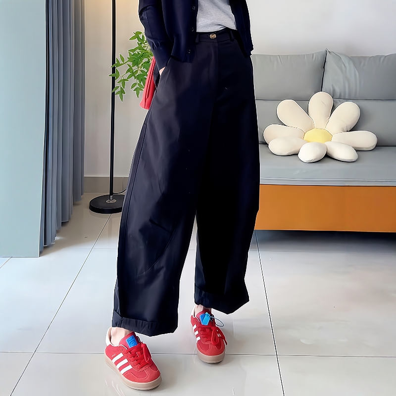 宽松九分萝卜哈伦香蕉裤 爆款 女秋2025新款 白色卷边阔腿休闲弯刀裤