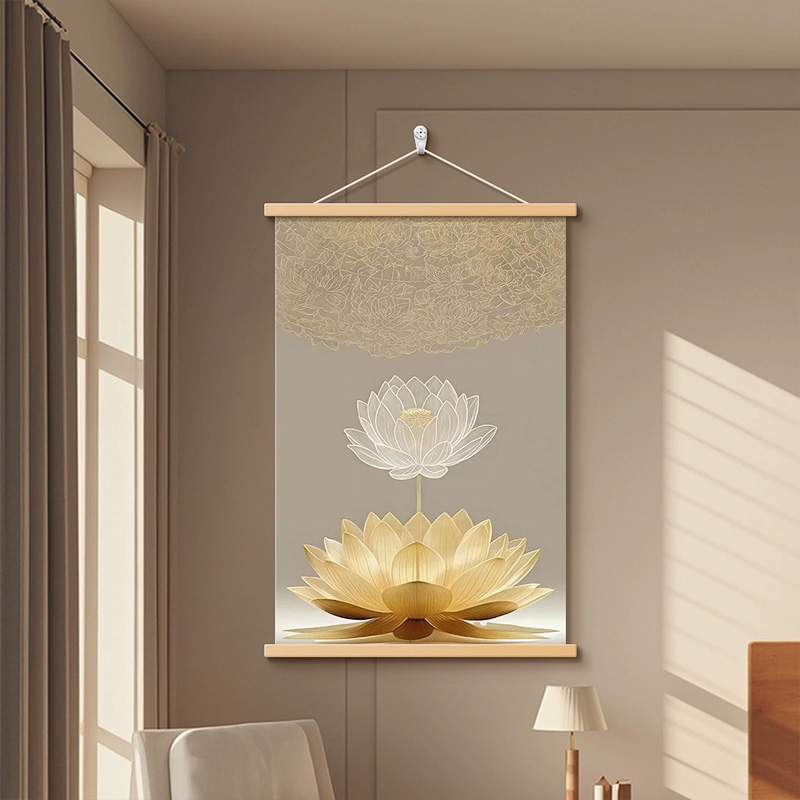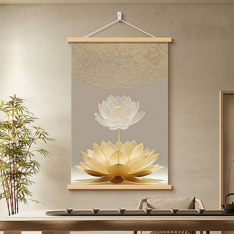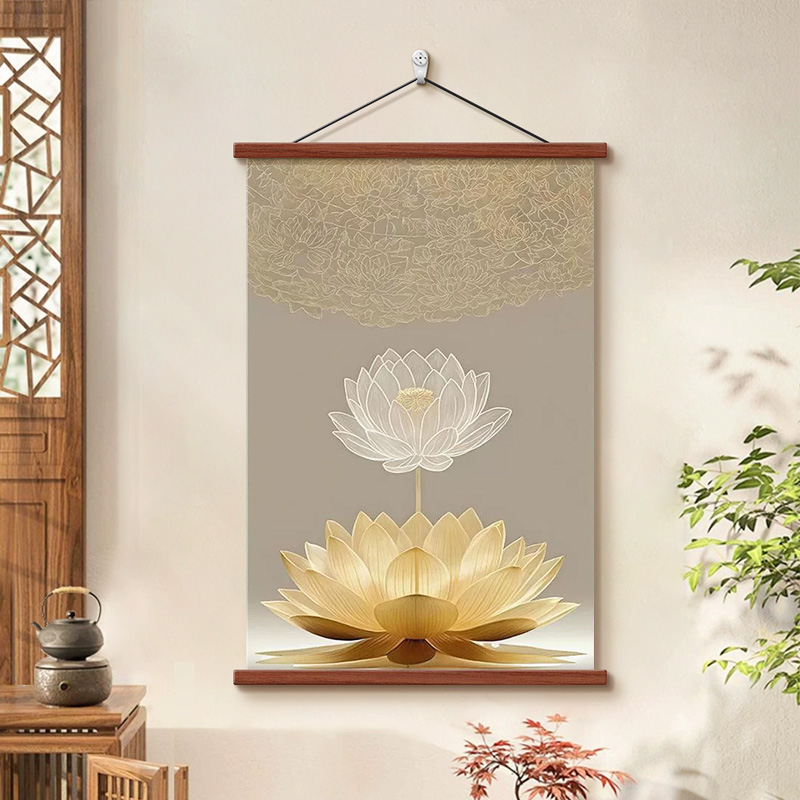 壁画 饰画茶室书房背景墙挂画办公室玄关竖版 新中式 禅意莲花客厅装