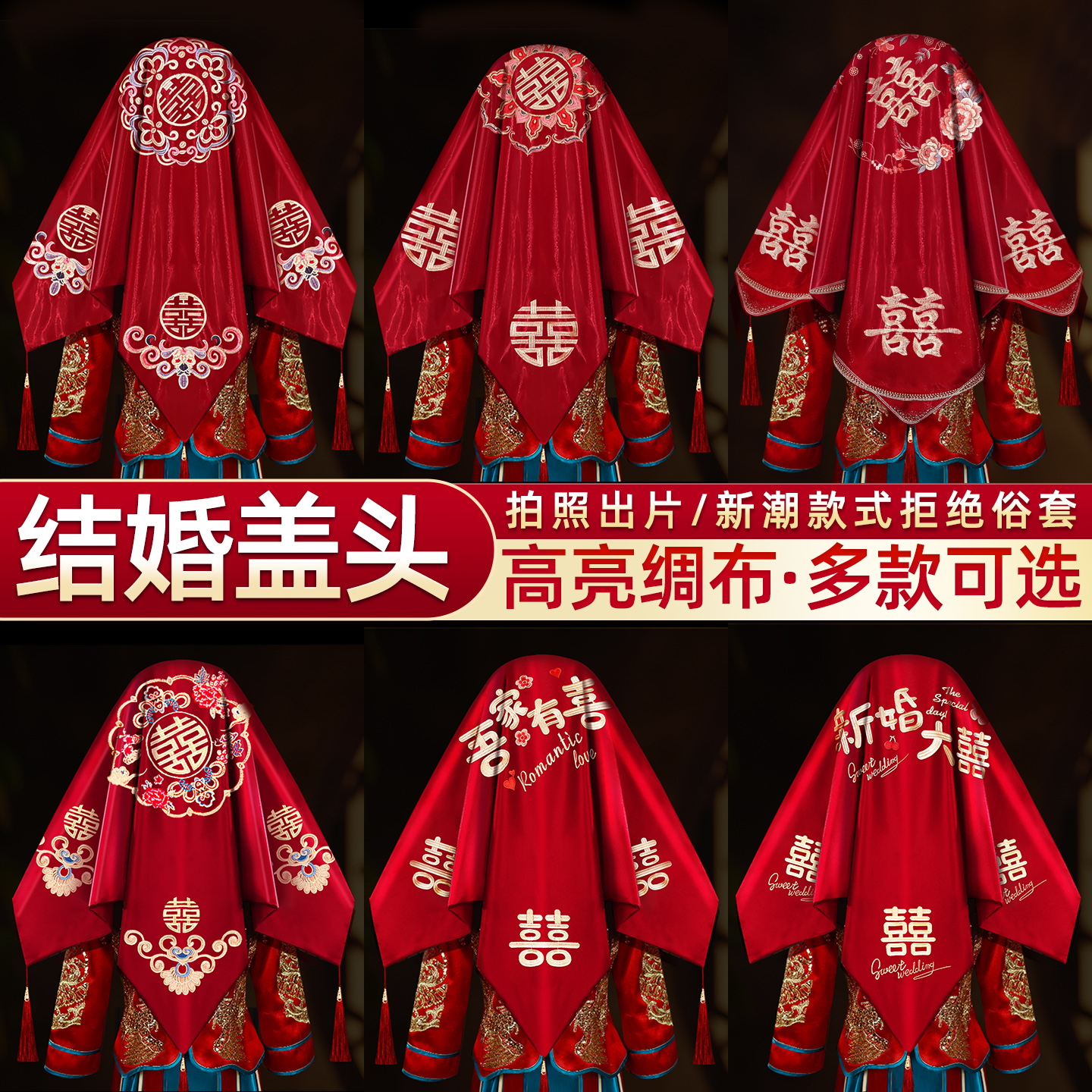 结婚新娘喜帕红色手帕小手绢喜字小方巾婚庆用品大全新娘配件 包邮