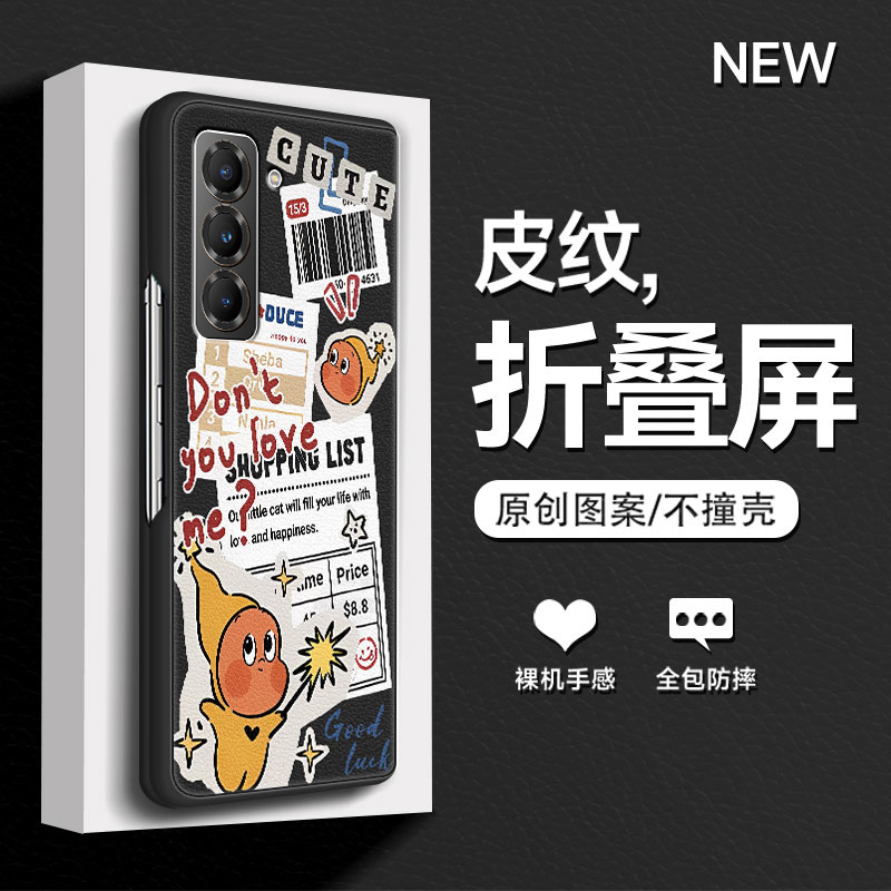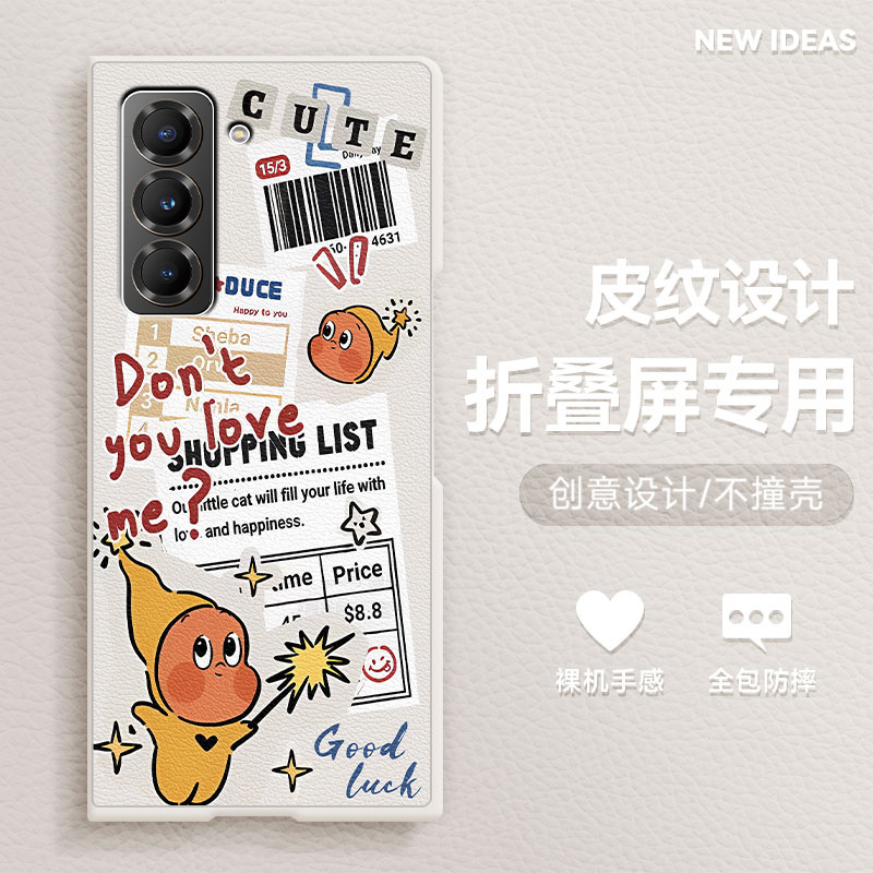 适用三星W25手机壳W24折叠屏2025新款 超薄男女保护套 w23超火防摔Galaxy呆萌星星人可爱卡通肤感小羊皮时尚