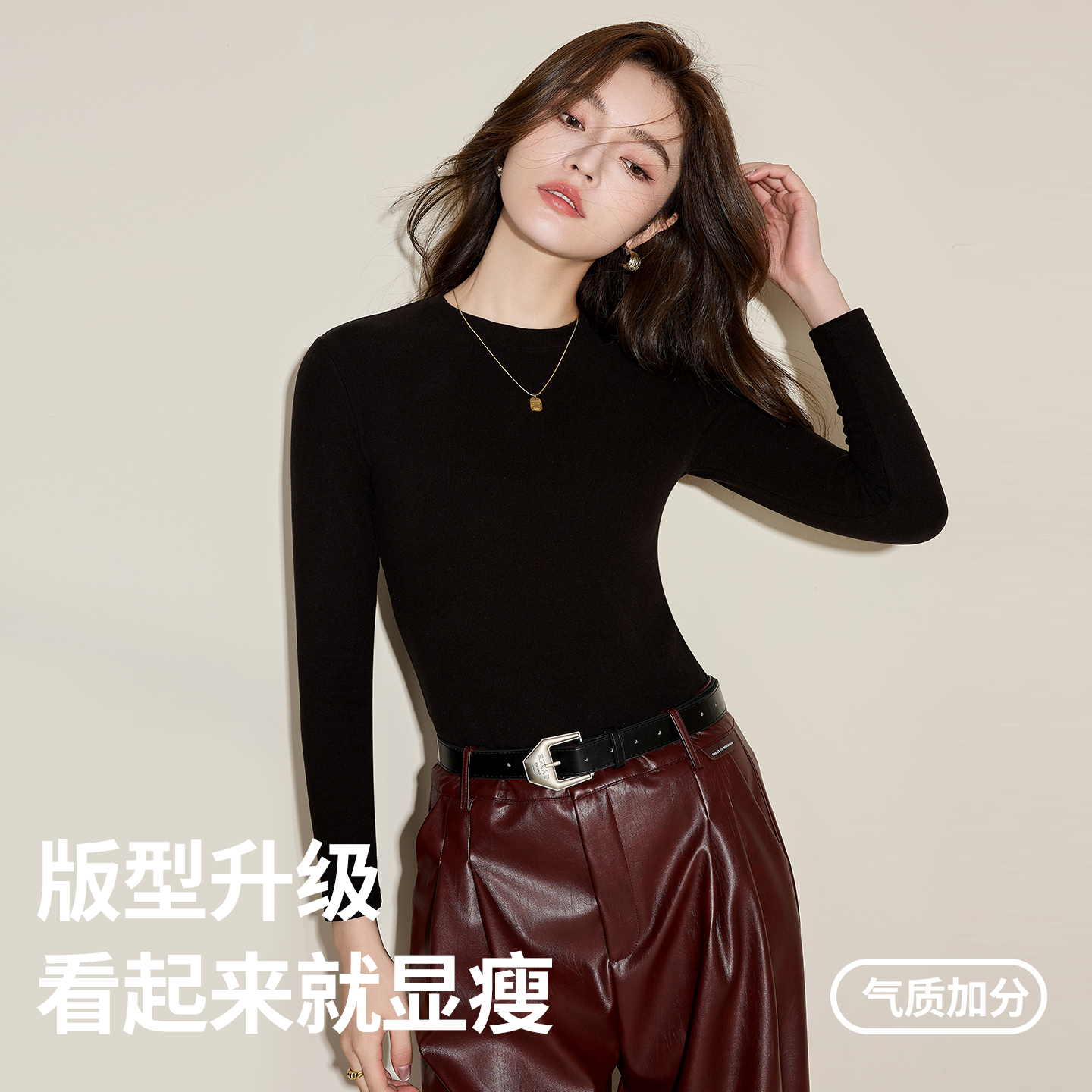 上衣外穿修身 黑色圆领打底衫 穿搭长袖 早秋内搭爆款 t恤 女2025新款