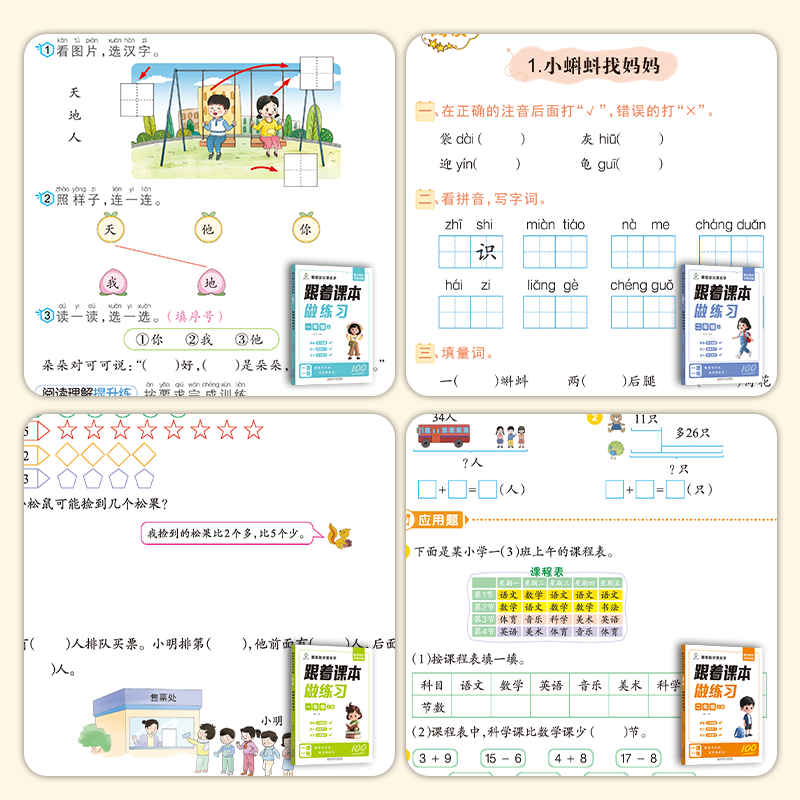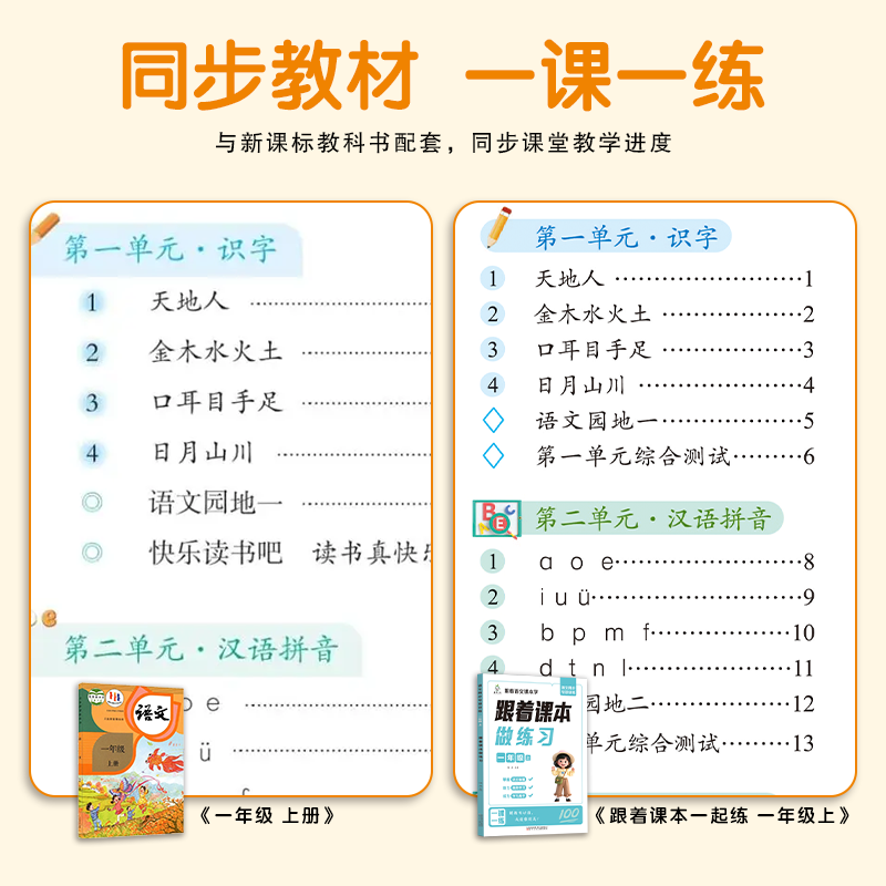 跟着语文数学课本学一课一练 一二年级上册语文数学跟着课本做练习专项同步训练 小学生同步练习阅读理解专项训练教材 2025新版