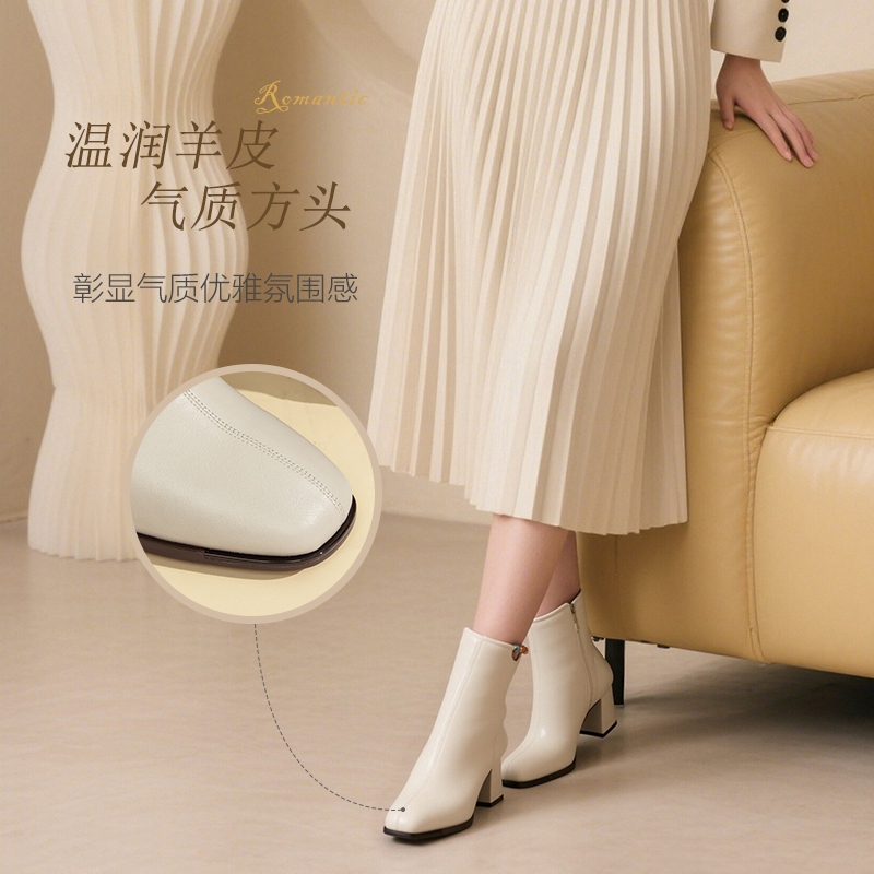 2025冬季 女粗跟短靴女百搭舒适通勤时装 新款 休闲鞋 靴 时尚 康奈女鞋