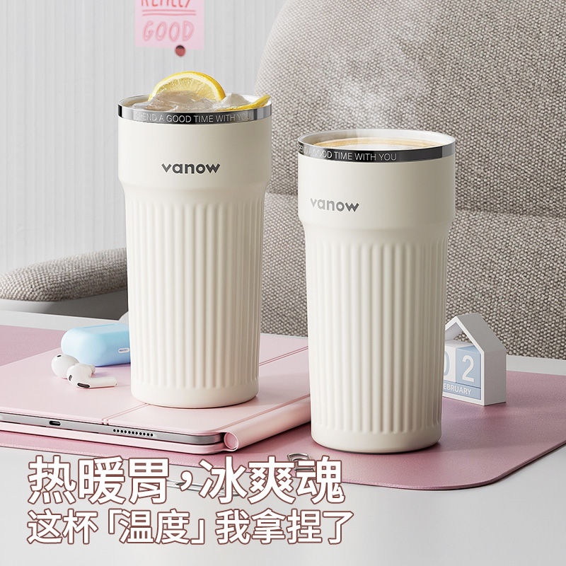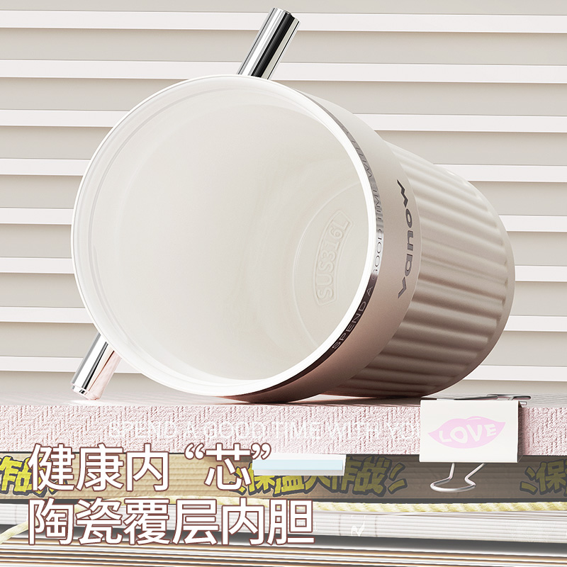 Vanow保温水杯陶瓷内胆咖啡吸管杯子女士高颜值2025新款 外出携带