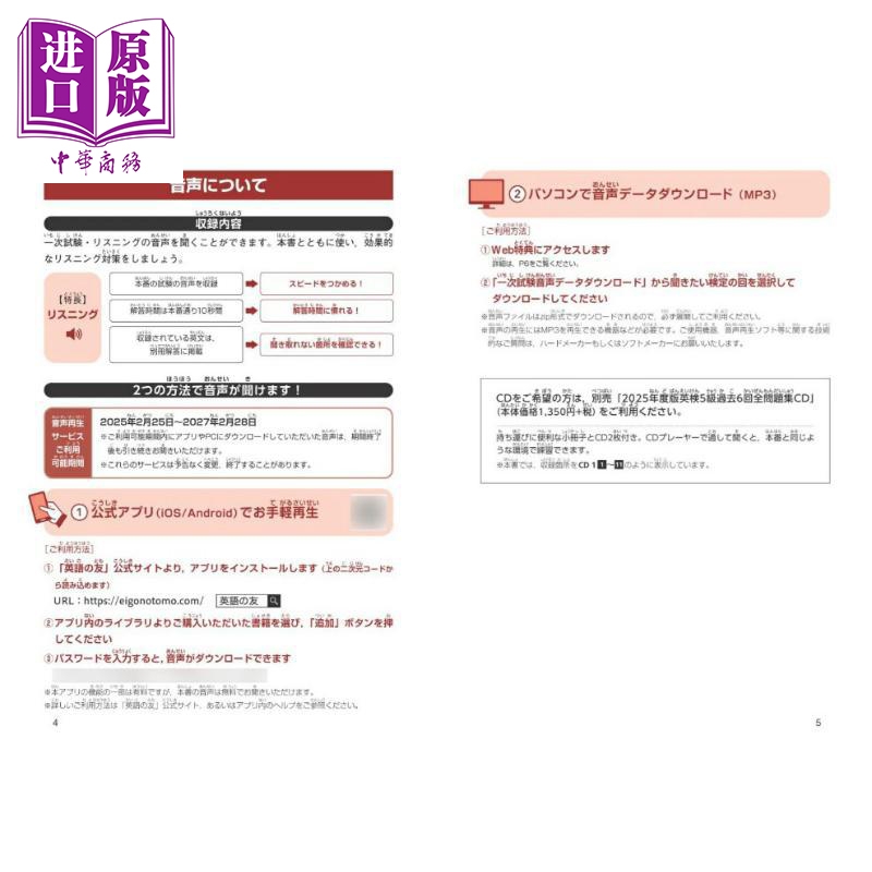 2025年度版 日文原版 中商原版 英检5级 過去6回全問題集 英语考试过去6年全问题集 英検5級 预售 日韩