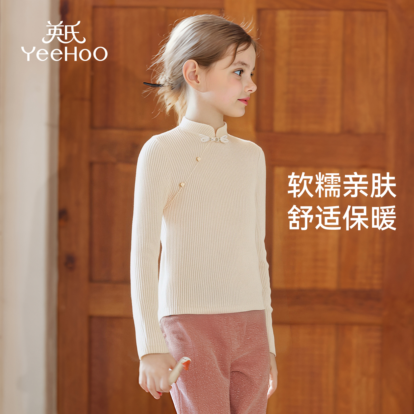 加厚保暖高领针织上衣 儿童新中式 英氏女童毛衣打底衫 2025秋冬新款