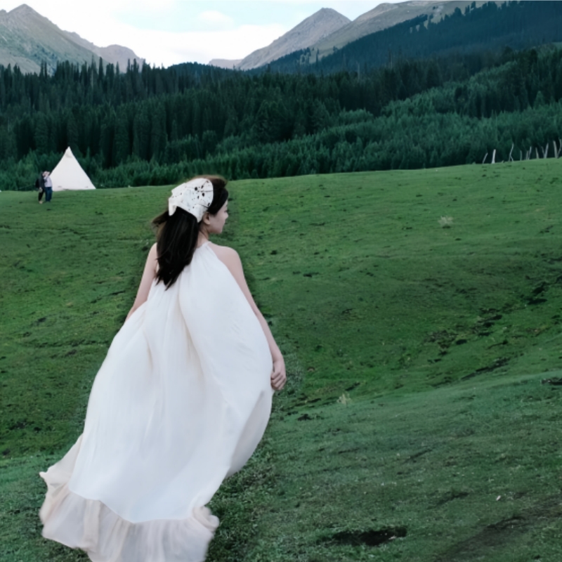 2025新款 田园头巾三角巾女旅游镂空发带头饰海边三角形扎染川西