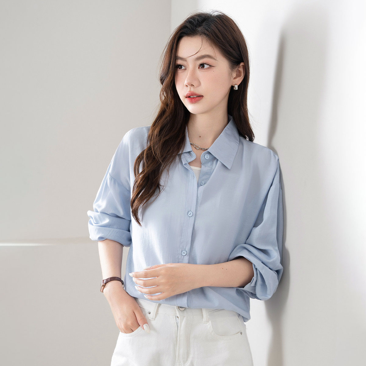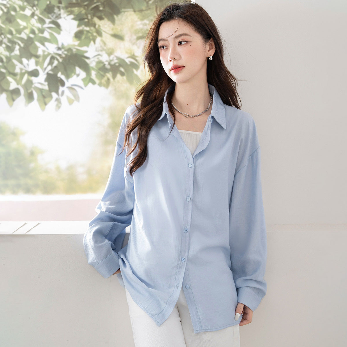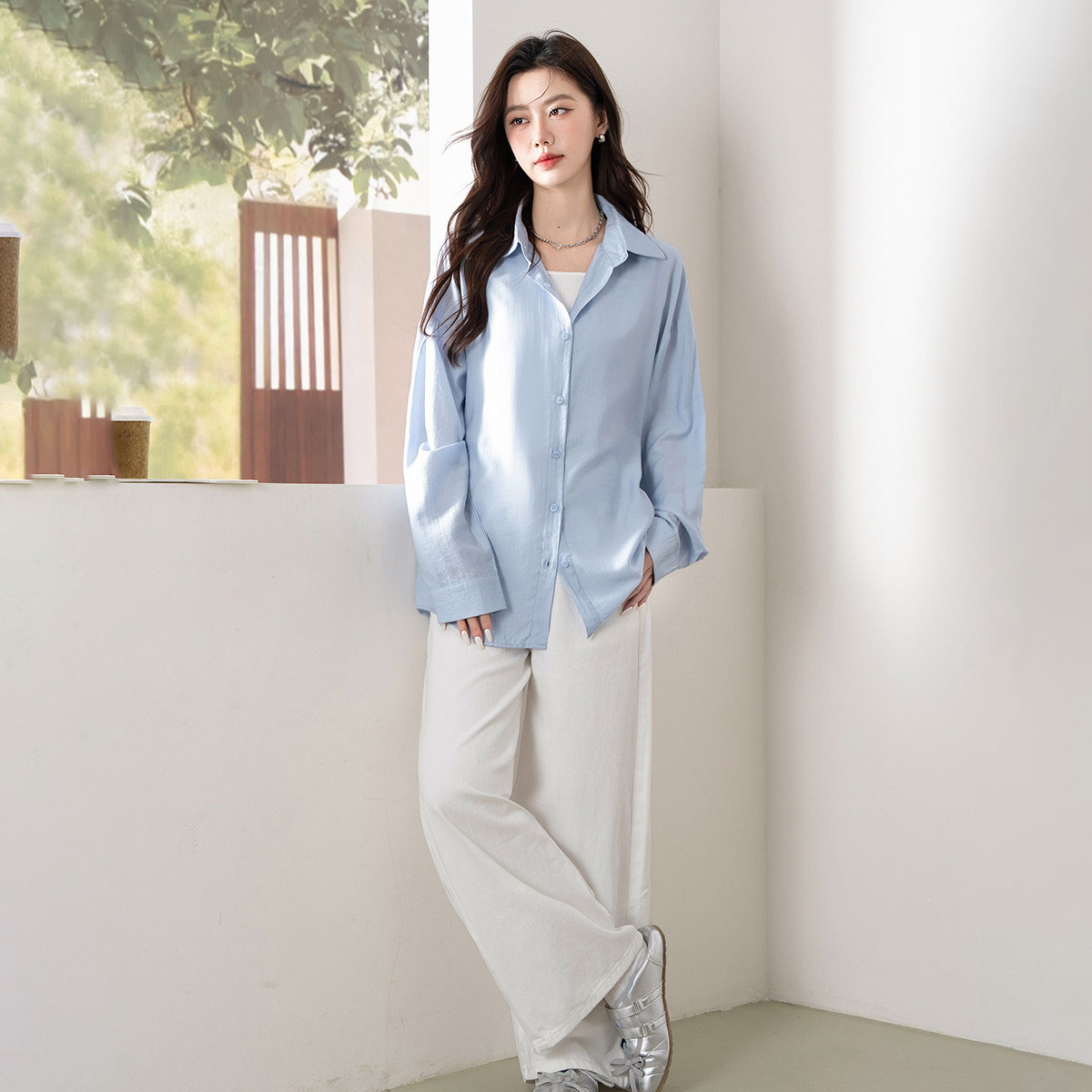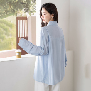 夏季 衬衫 宽松舒适通勤休闲气质上衣J 简约翻领女士长袖 班尼路时尚