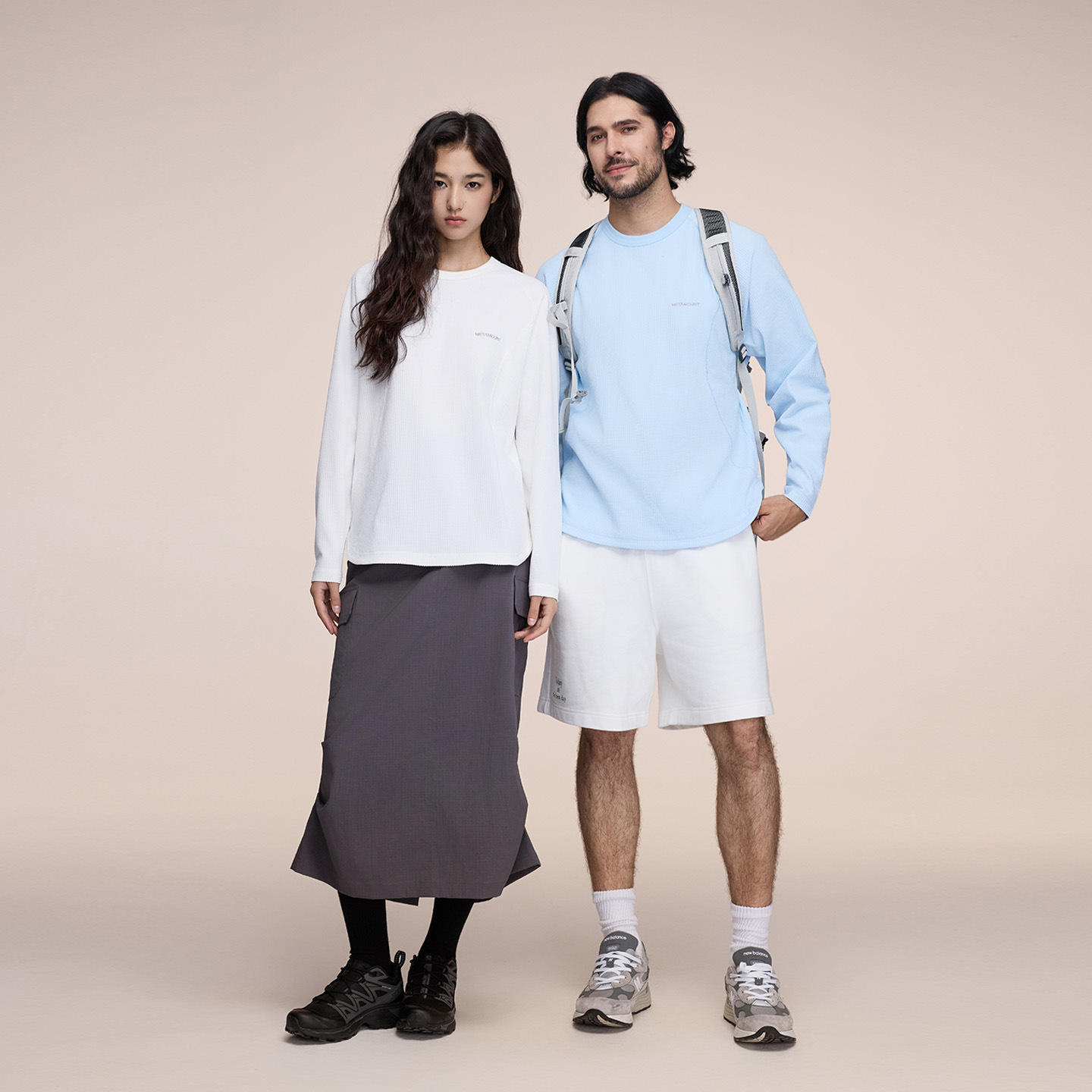 T恤2025年秋新品 又见高山MetaMount 华夫格柔软宽松情侣套头长袖