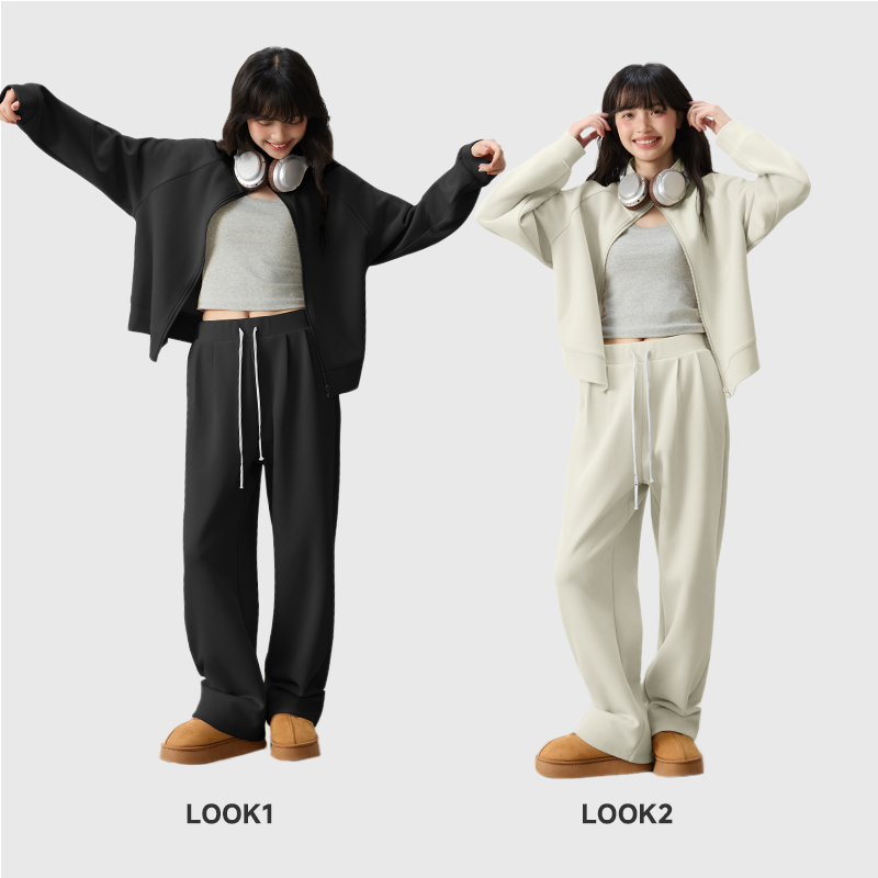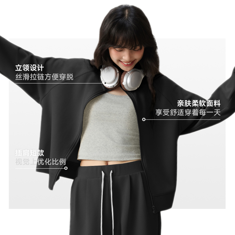 气质立领开衫 ZH回力卡其色休闲套装 时尚 秋季 短卫衣外套 女2025新款