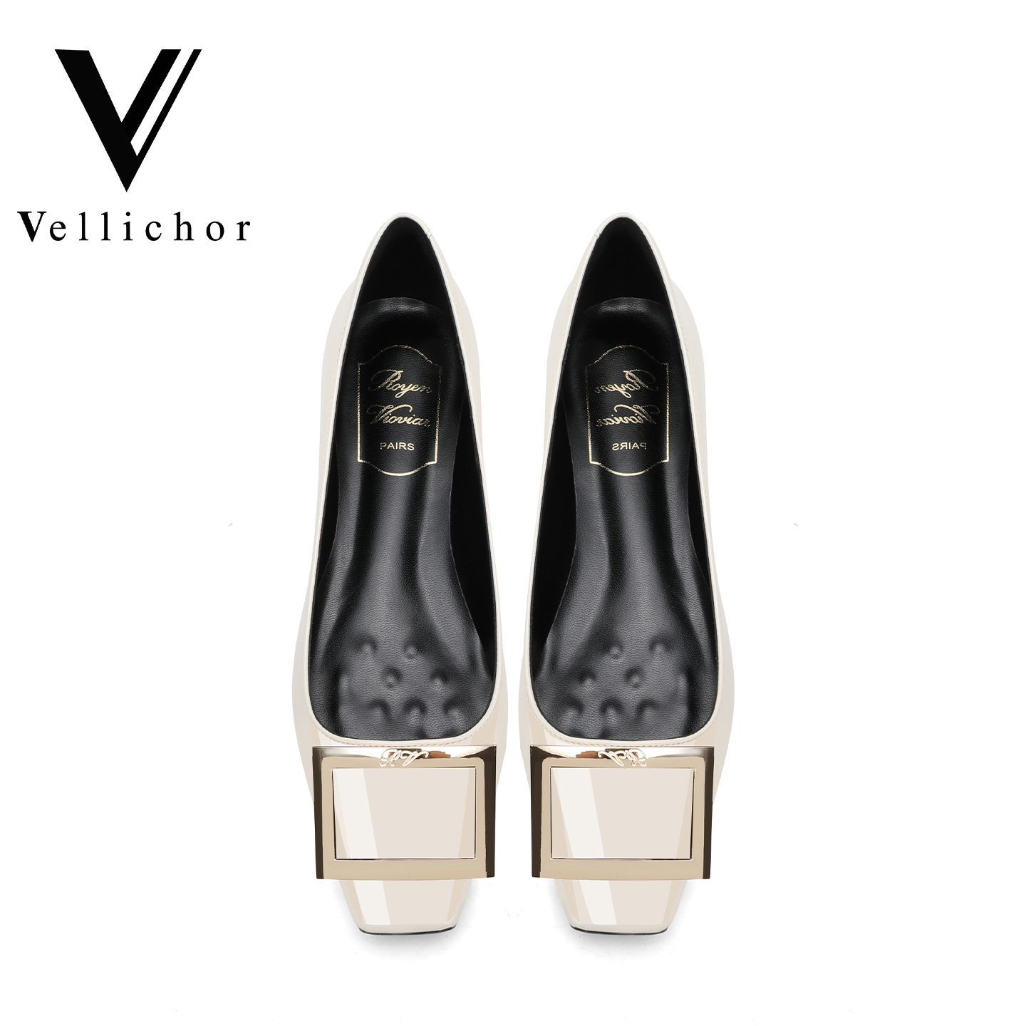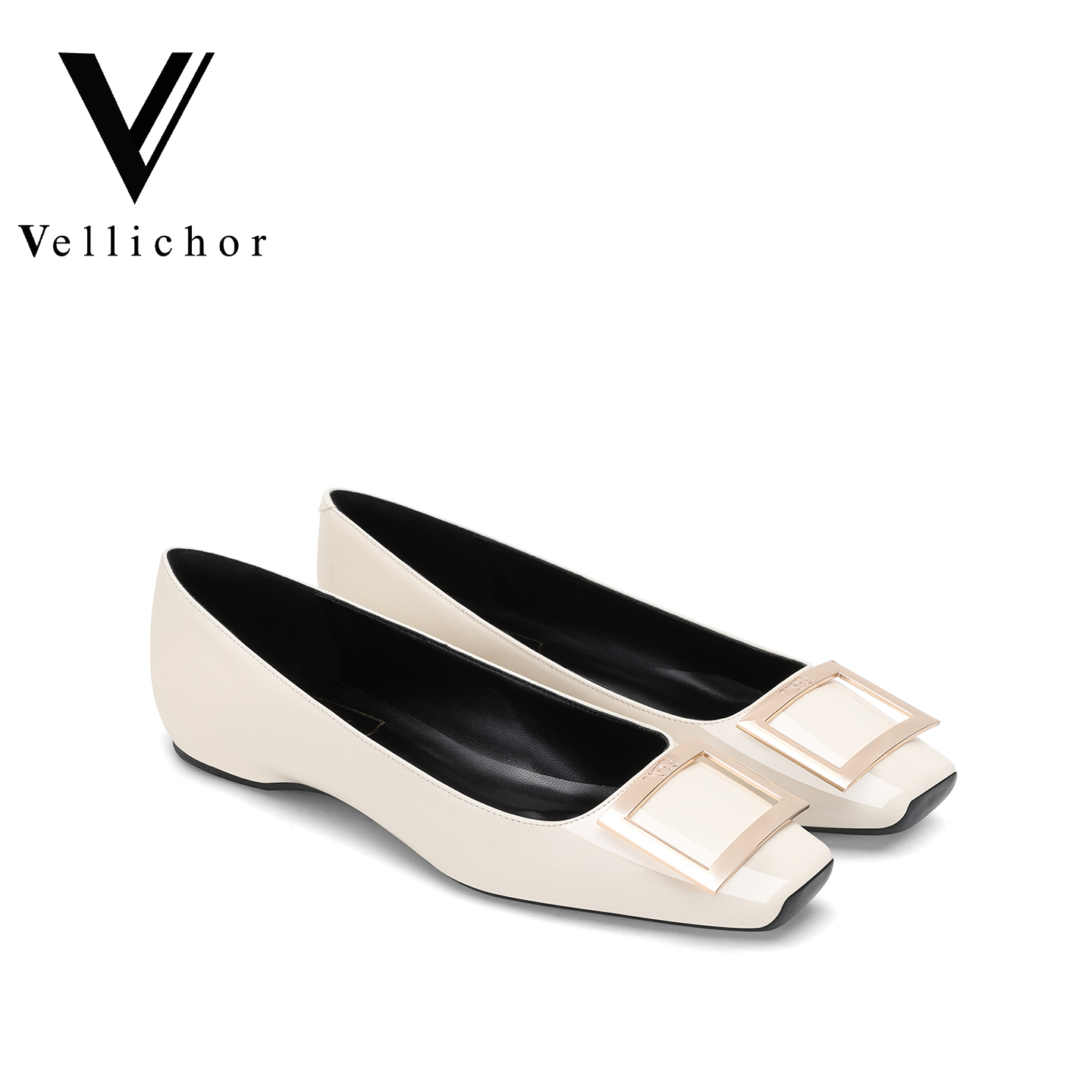 漆皮浅口气质通勤不累脚单鞋 方扣方头米白色平底鞋 新款 2025年秋季