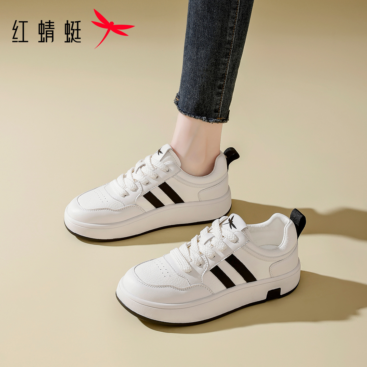 板鞋 经典 拼色小白鞋 红蜻蜓女鞋 运动鞋 新款 百搭厚底增高休闲鞋 秋季