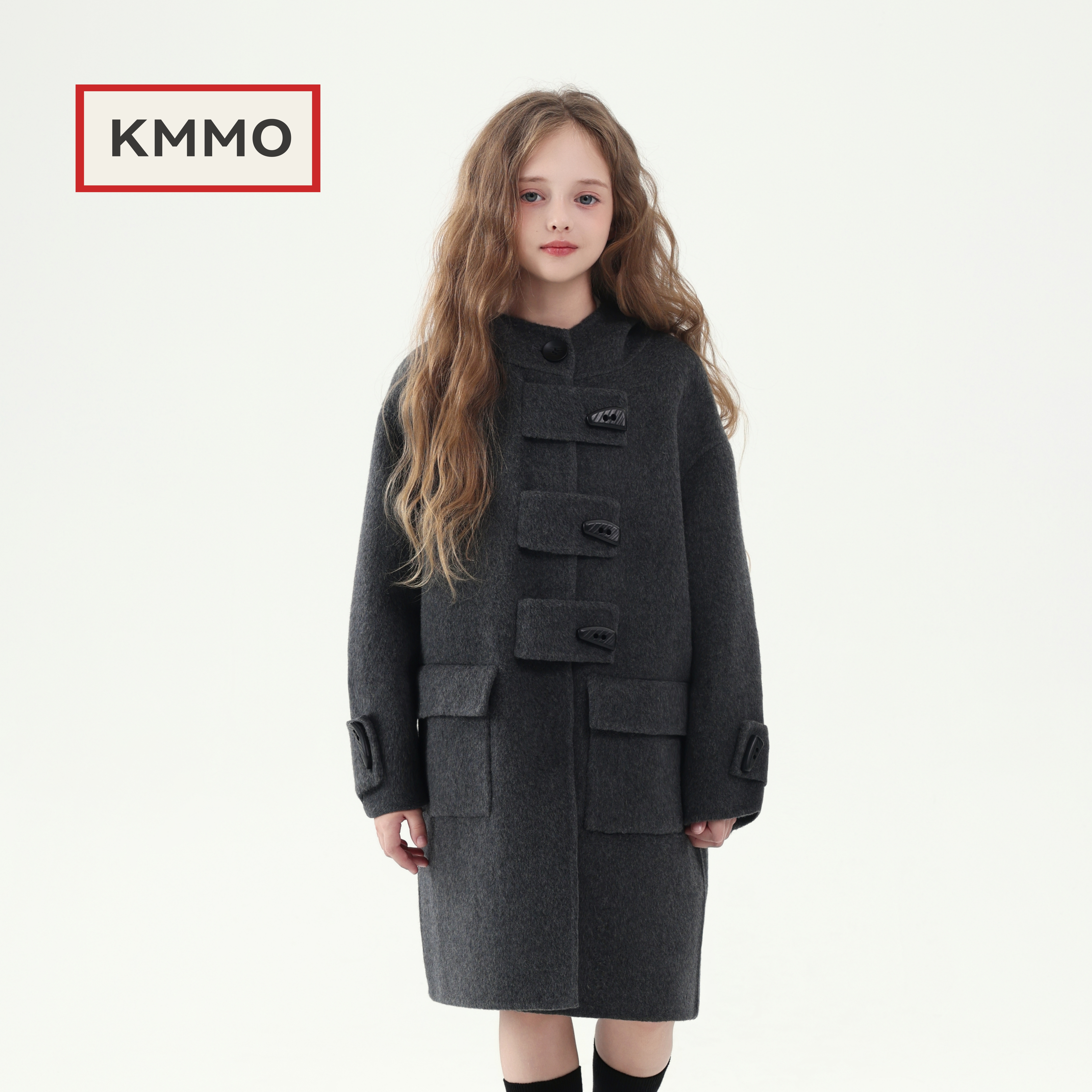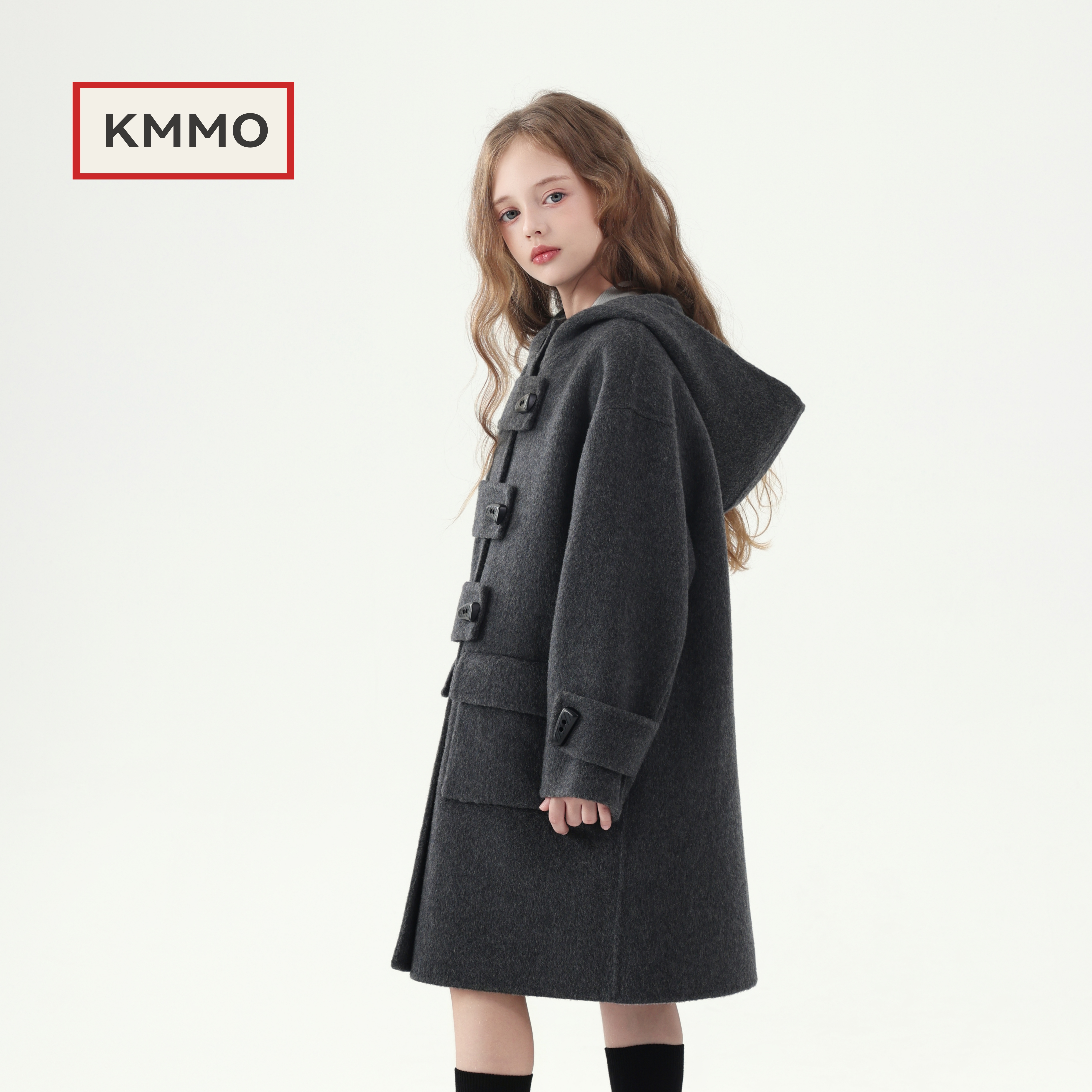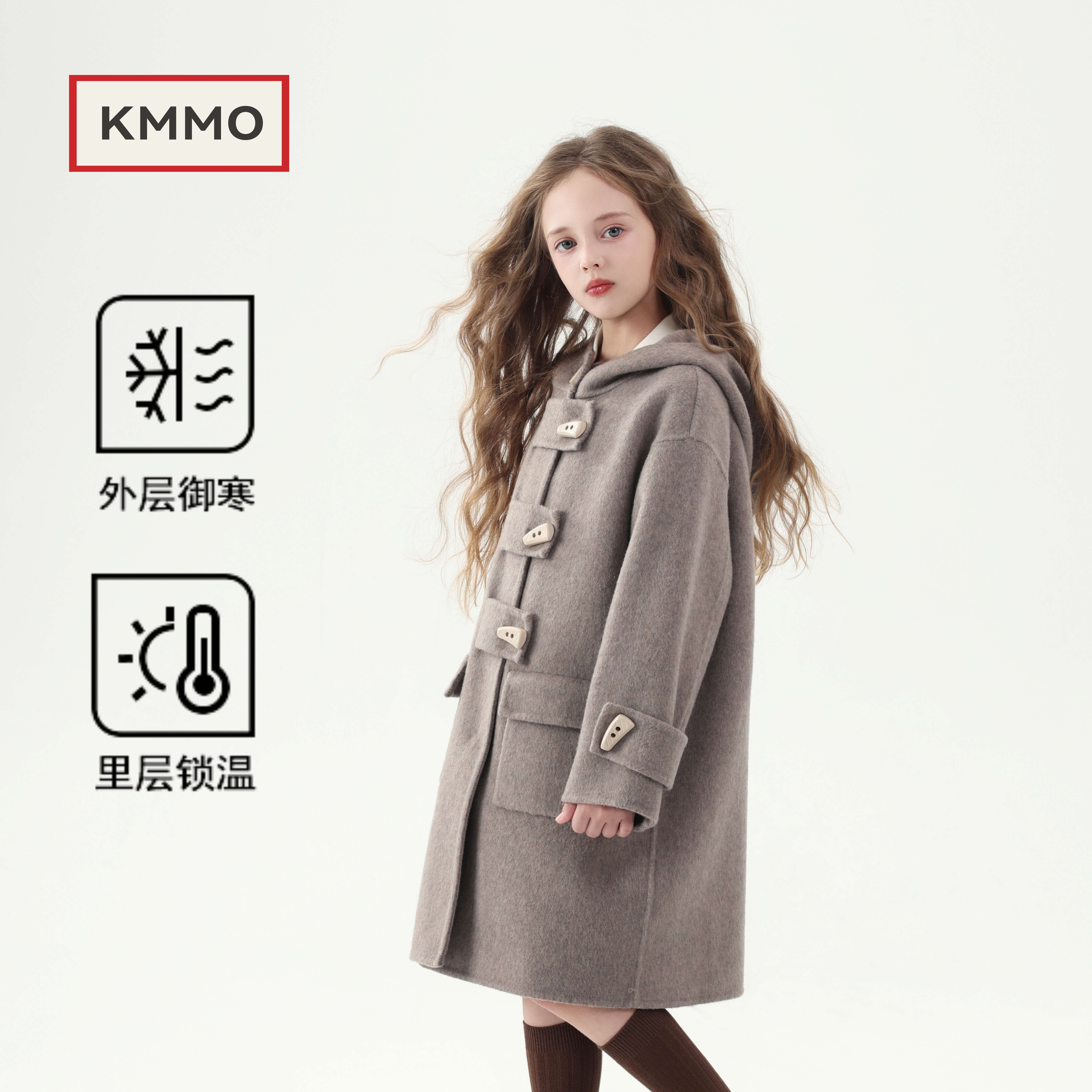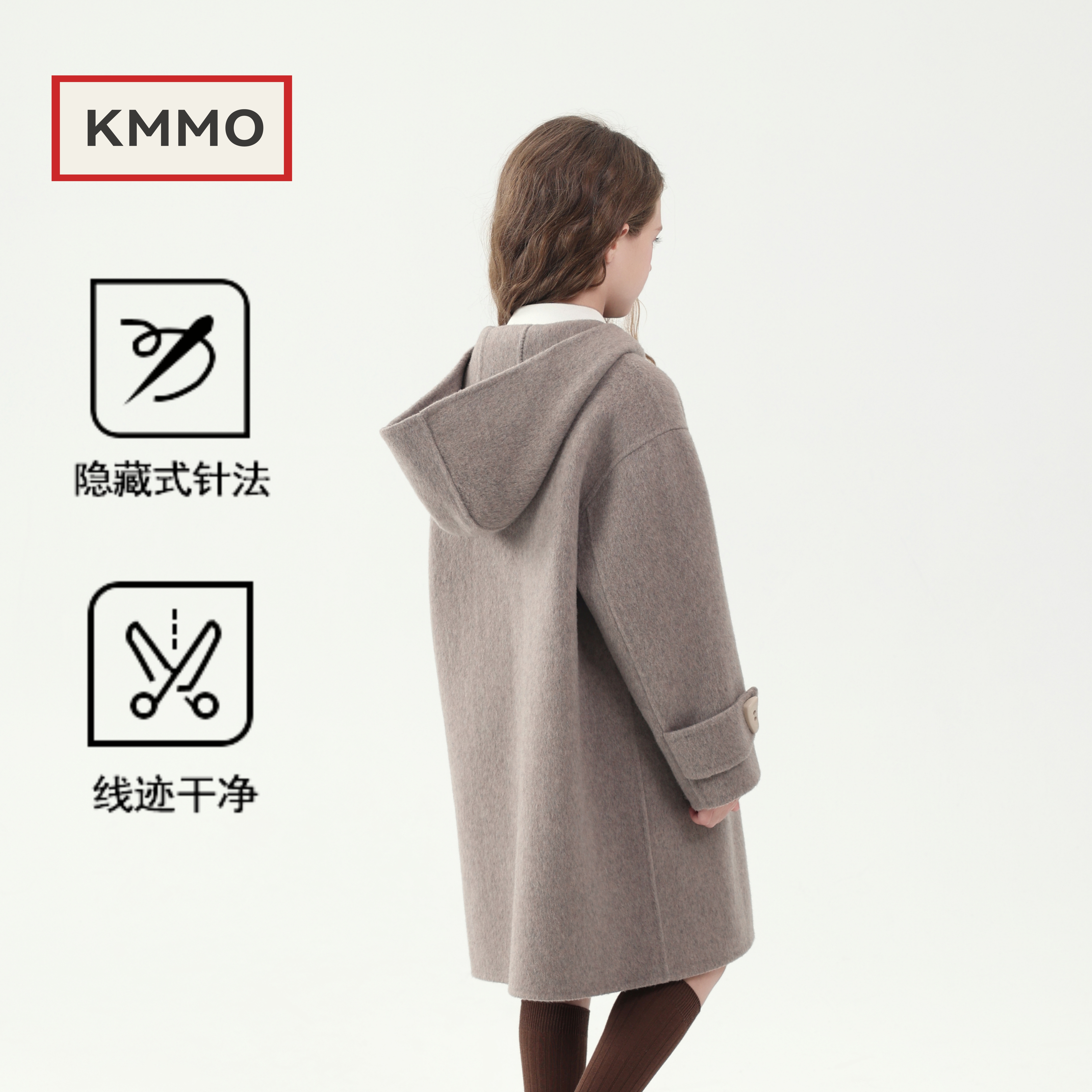 连帽牛角扣大衣女冬季 乐町韩系少女风长款 绵羊毛呢子外套 预