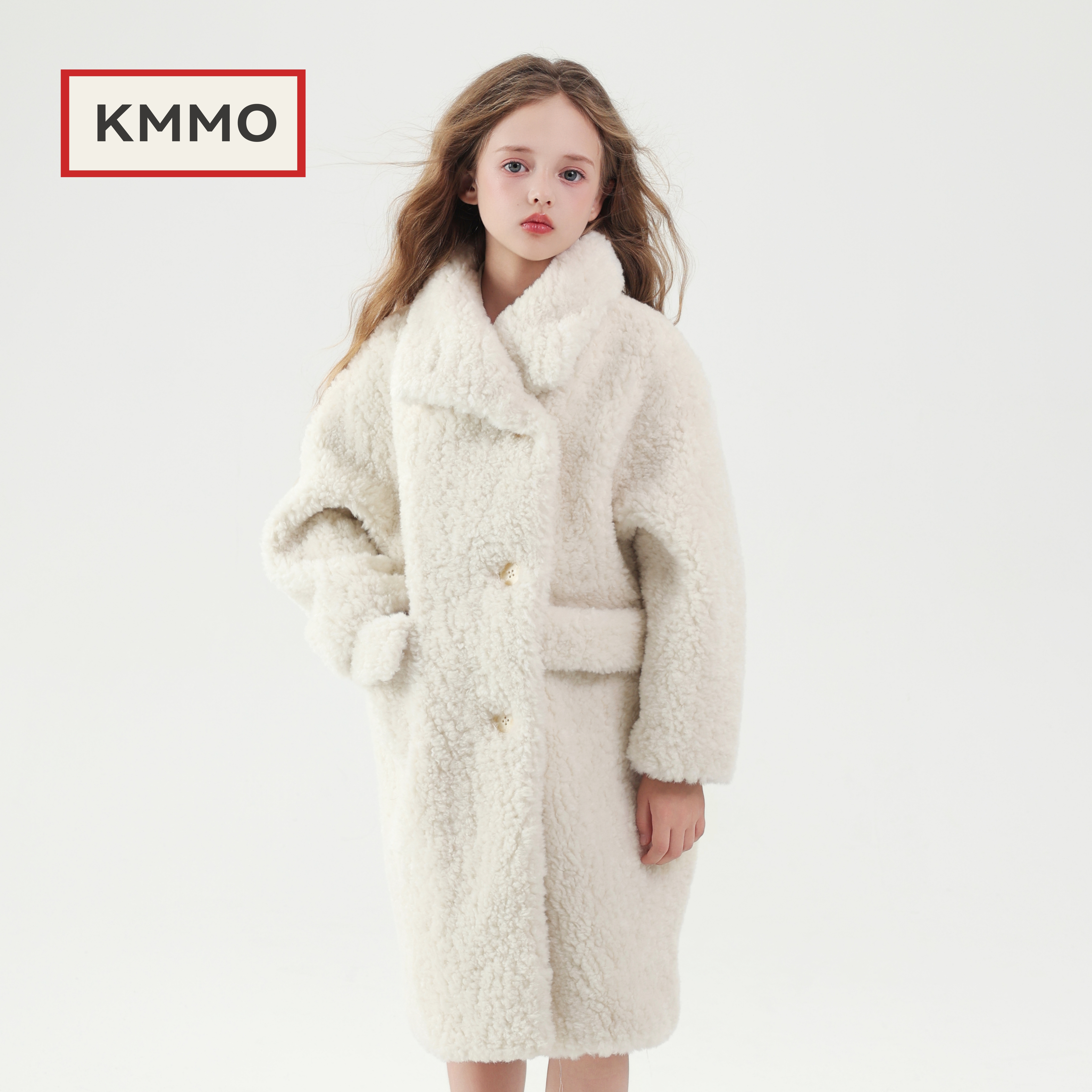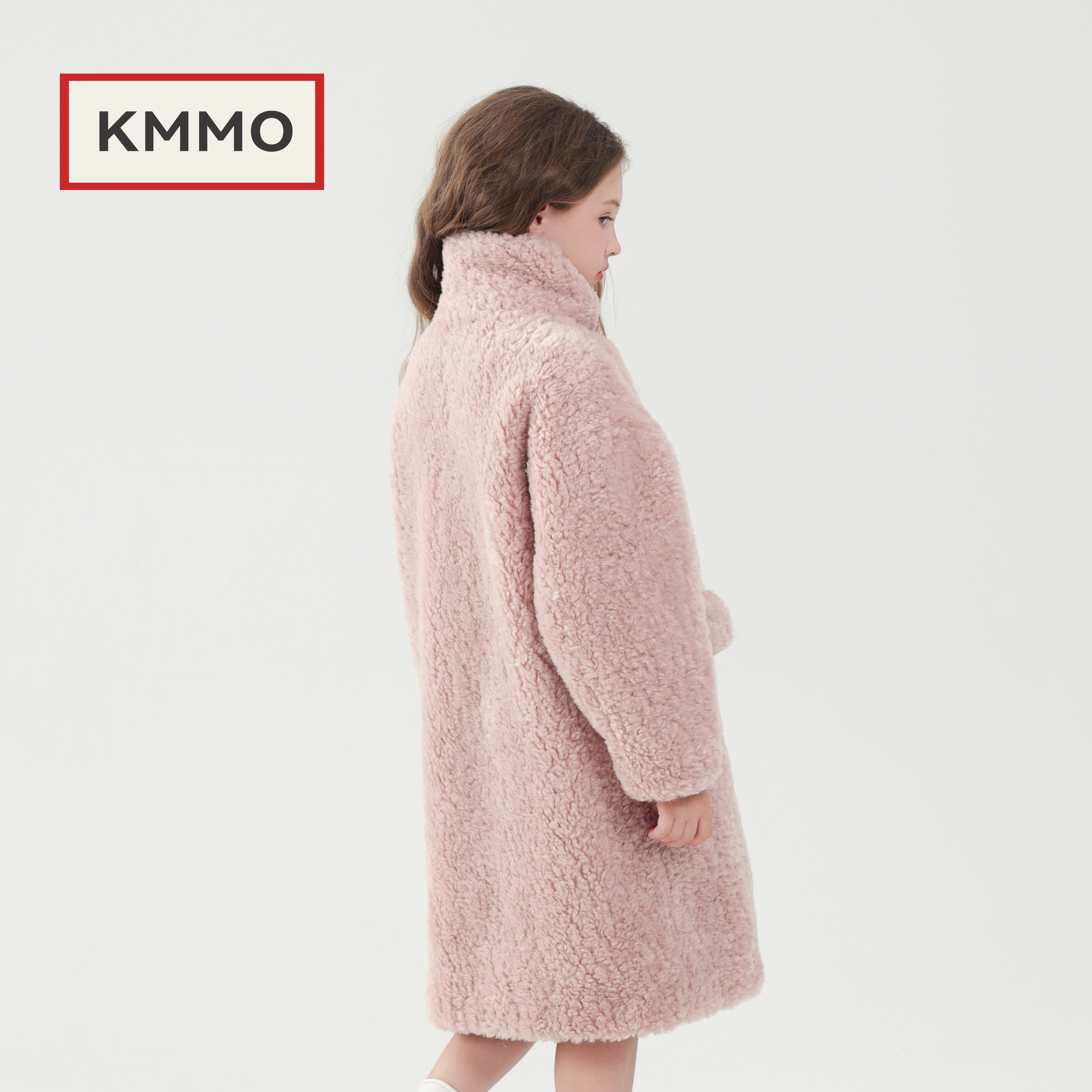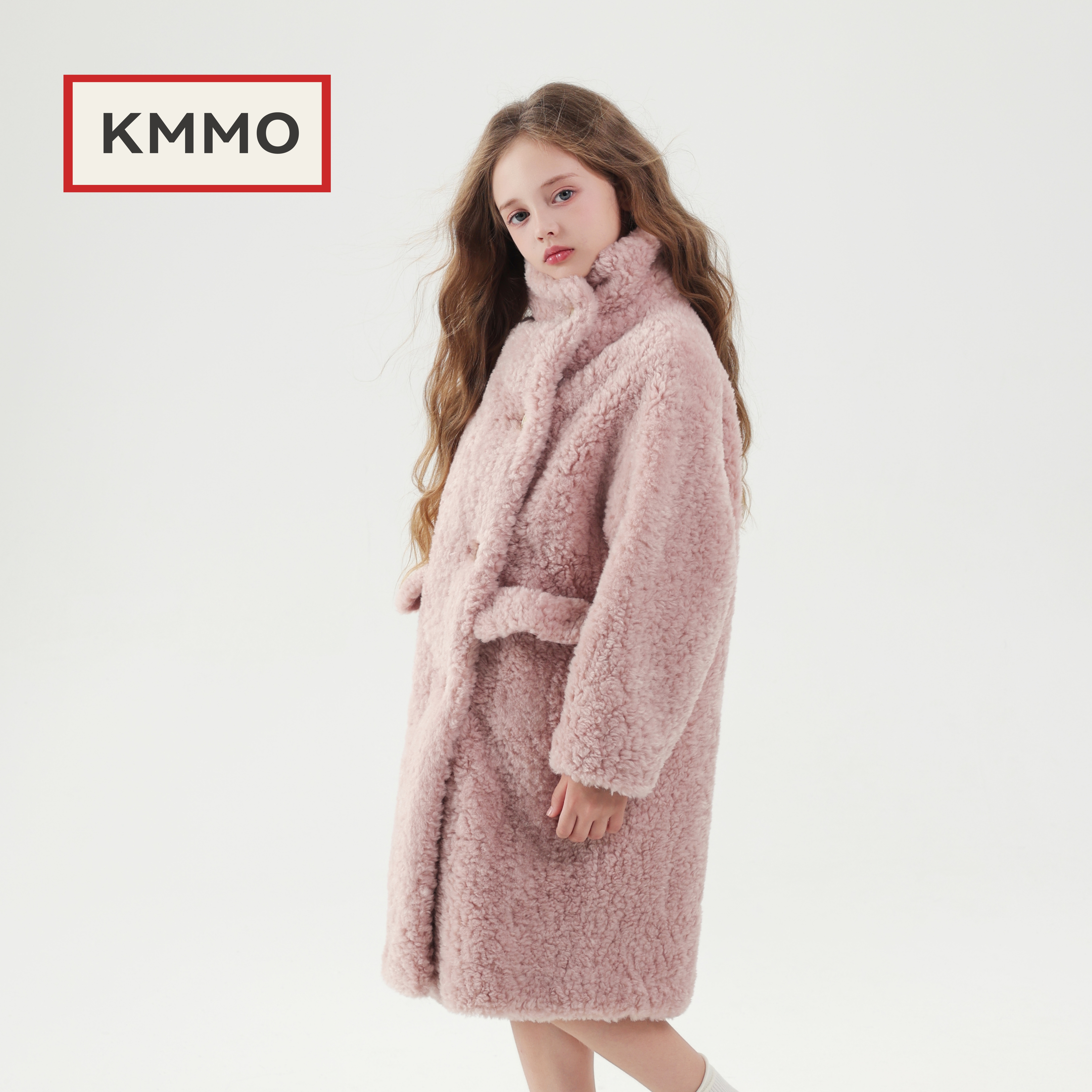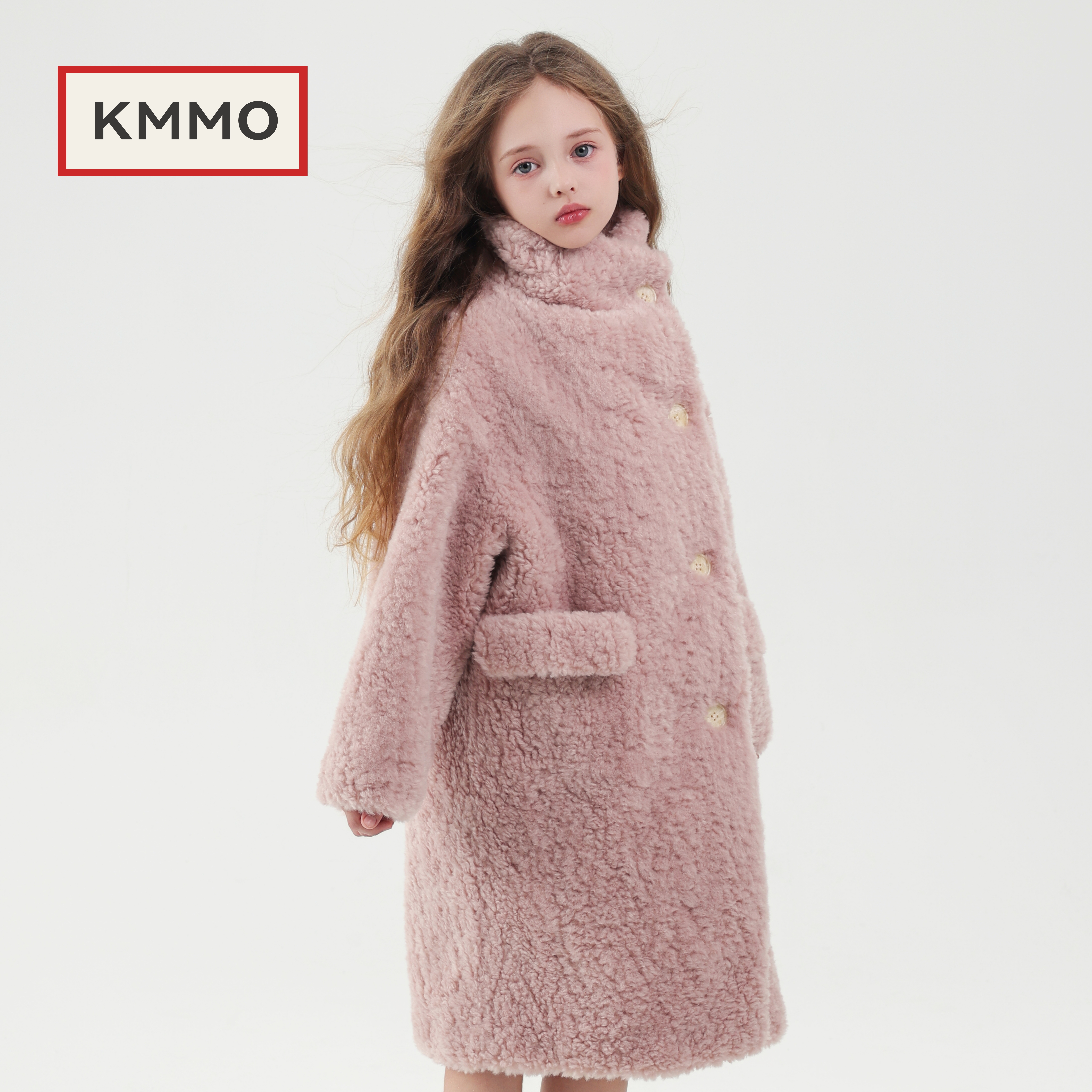 儿童仿羊羔毛大衣加厚加绒中长款 KMMO女童皮草外套2025冬季 新款