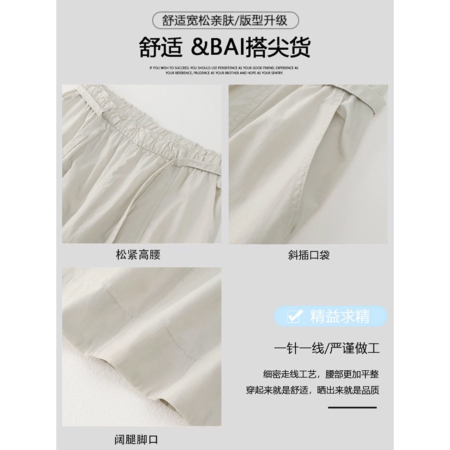 高腰显瘦小个子设计感休闲速干阔腿裤 薄2025新款 女夏季 冰丝弯刀裤