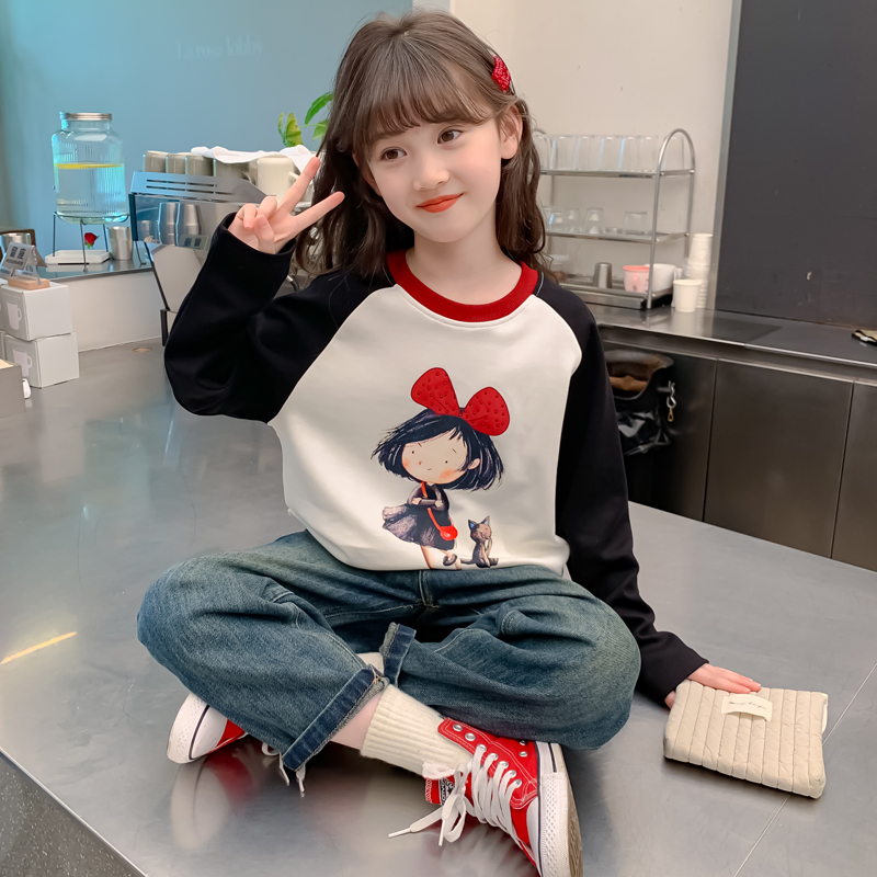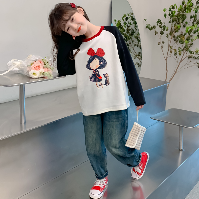 小女孩衣服中大童打底衫 女童长袖 洋气儿童秋季 2025新款 T恤春秋款