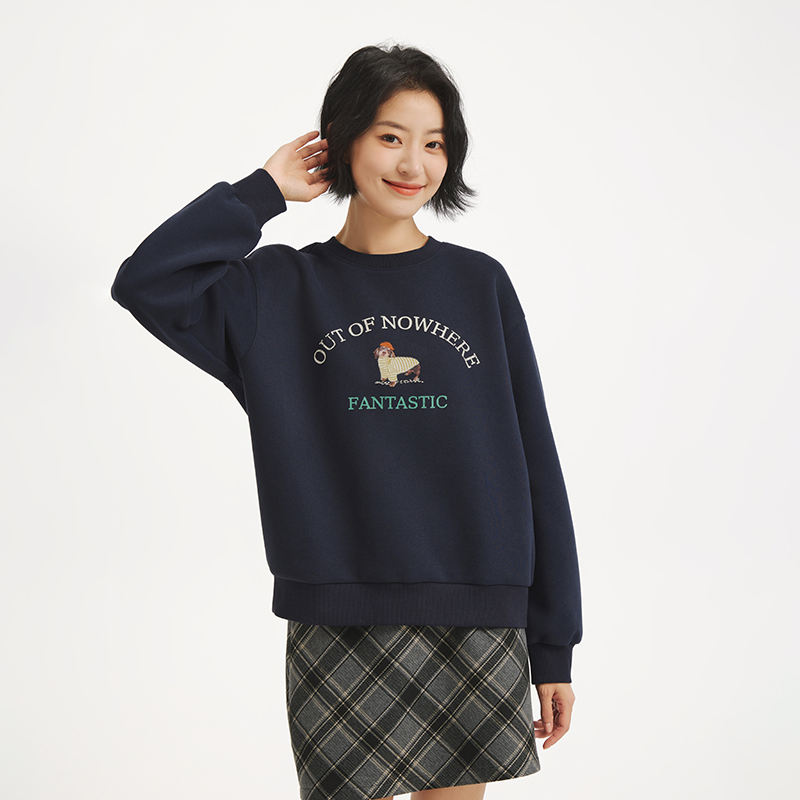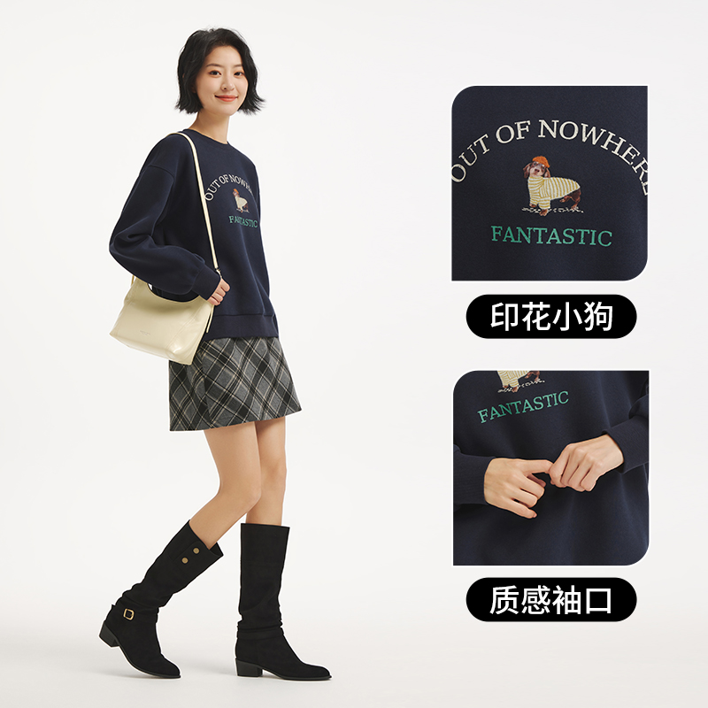 萌宠印花圆领卫衣宽松内搭打底衫 热风女士套头卫衣2025年秋季 新款