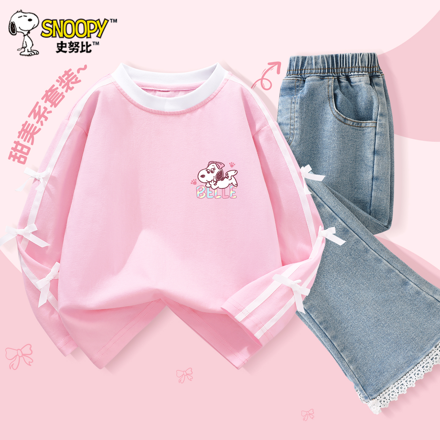 情侣宽松直筒长裤 查尔斯桃心腊肠狗假两件卫衣休闲两件套装 男秋季