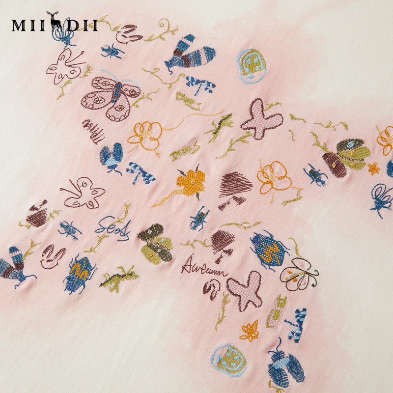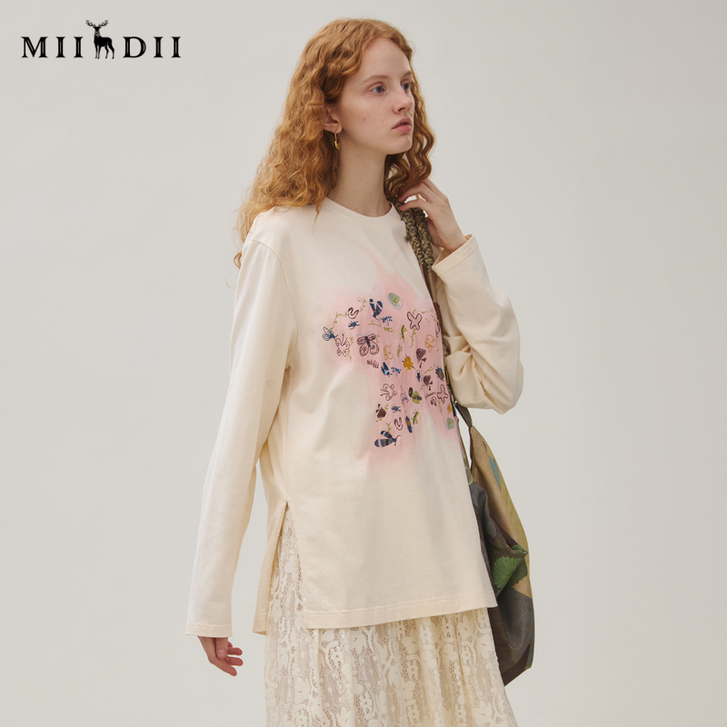 谜底T恤长袖 百搭柔软亲肤温暖印花绣花上衣253MT1115 女2025秋新品