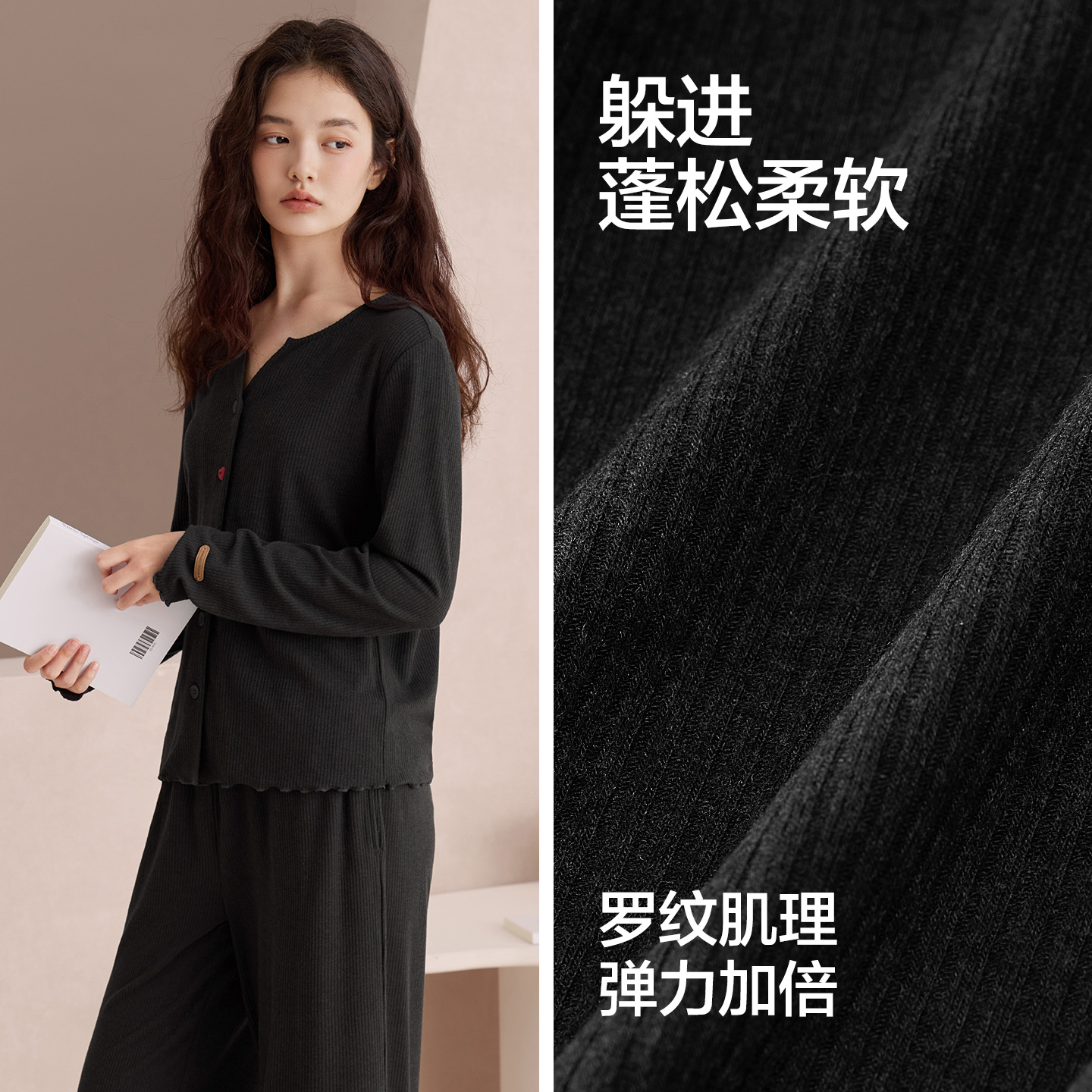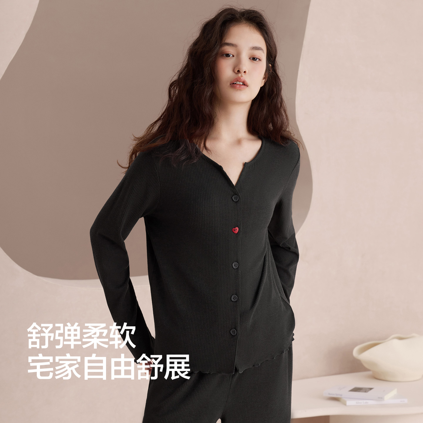 慵懒风显瘦可外穿家居服套装 红豆女士睡衣开衫 磨毛新款 春秋长袖 款