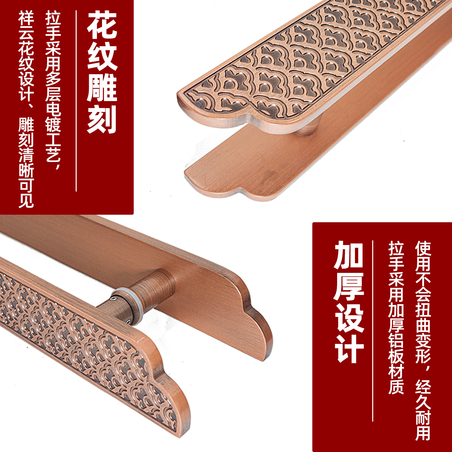 仿古铜拉手新中式 门把手玻璃门木门高级感定制logo酒店包厢门拉手