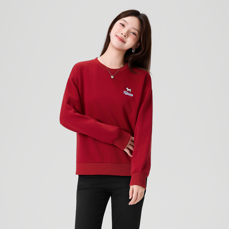 休闲简约落肩袖 宽松圆领时尚 女套头上衣 新款 快鱼卫衣女2025年秋季