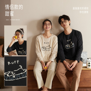 秋鹿柔软亲肤纯棉睡衣女秋情侣男袖 立即预订 家居服 双11预售
