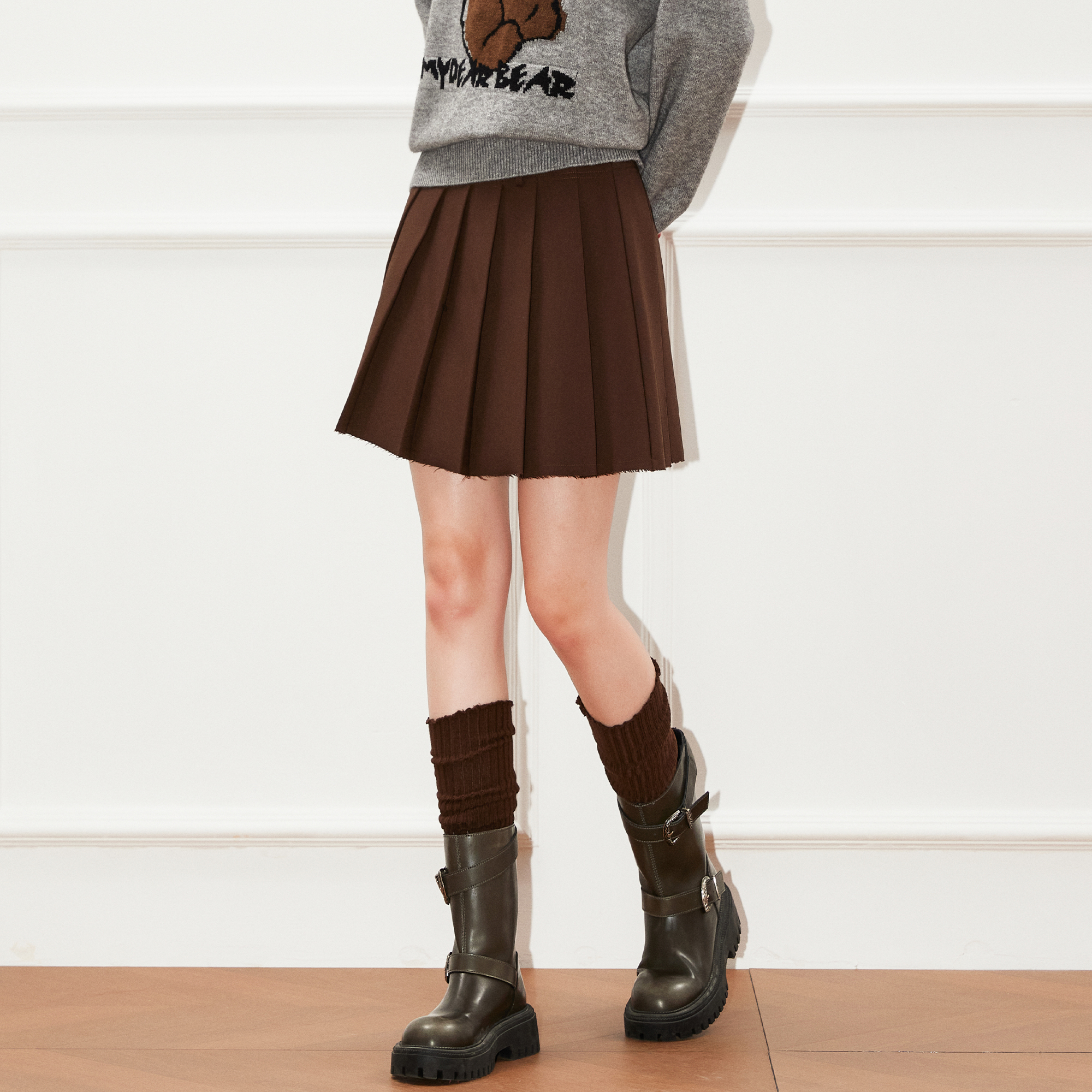 班尼路百褶半身裙女2025秋新款 小个子高腰显瘦学院风中长裙A字裙Q