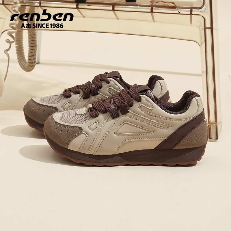 复古运动休闲鞋 人本皮面阿甘鞋 厚底增高百搭时尚 新款 女2025春秋季