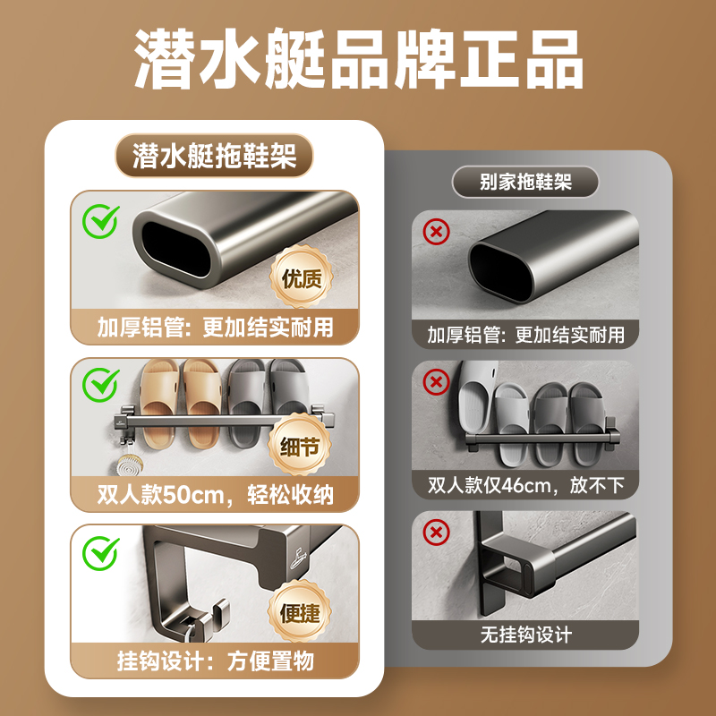 潜水艇免打孔浴室拖鞋 沥水架子厕所收纳神器 架卫生间置物架壁挂式