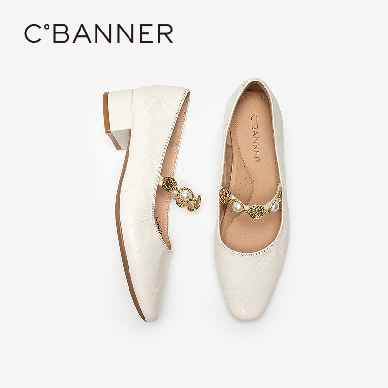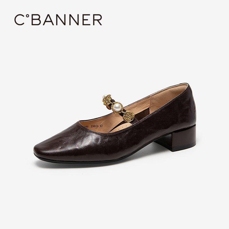浅口单鞋 千百度手抓皮中跟玛丽珍鞋 羊皮小香风法式 新款 女2025秋季